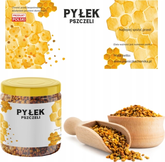 Ezek az öntapadó címkék üvegekhez vagy méhvirágport tartalmazó csomagolásokhoz készültek. Elegendő helyet biztosítanak a kulcsfontosságú információk számára, mint például a termék neve, a minőségmegőrzési idő és esetleg a gyártási tétel. Átlátható formátumuk javítja a termék megjelenítését, és professzionális külsőt kölcsönöz neki.