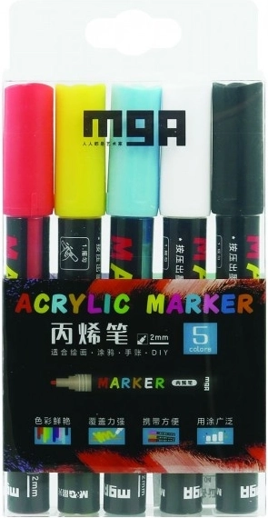 A csomag 5 különböző színt tartalmaz, amelyek ideálisak változatos művészeti technikákhoz. Bízhatsz a gyors száradásban és a száradás utáni vízállóságukban. Mindez egy praktikus, 9 x 18 x 2 cm méretű dobozban található.