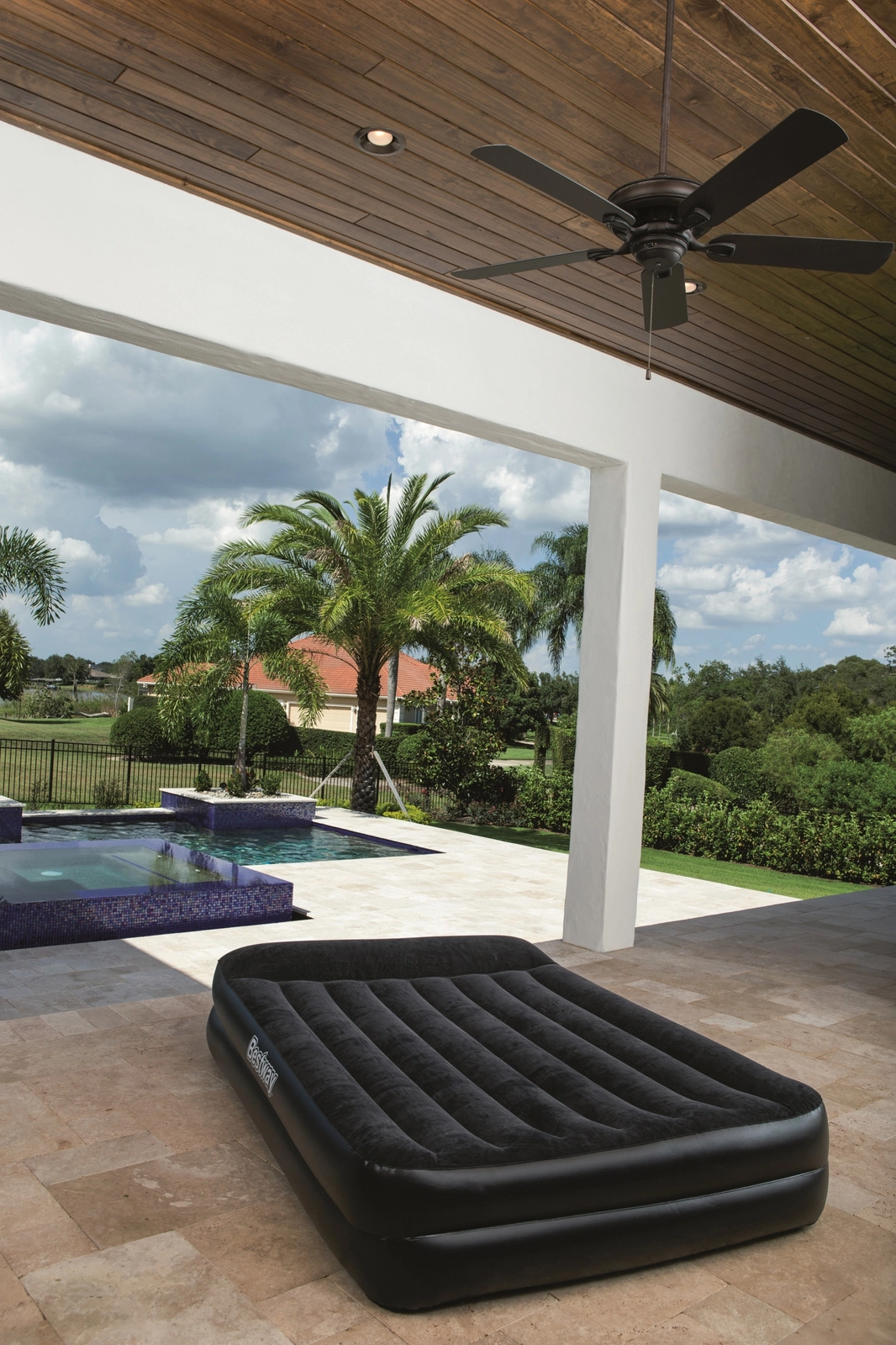 A beépített, 220–240 V-os elektromos pumpa körülbelül 4 perc alatt felfújja a matracot. Használat után egyszerűen leeresztheti, és az alapcsomagban található táskába teheti. A Coil‑Beam szerkezet egyenletesen osztja el a nyomást, így az ágy két felnőtt számára is kényelmes.