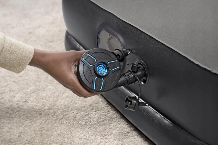 A 220–240 V-os integrált AC pumpa néhány perc alatt felfújja a matracot, és a leeresztést is megkönnyíti. Egyszerű kezelhetőség egyetlen forgókapcsolóval.