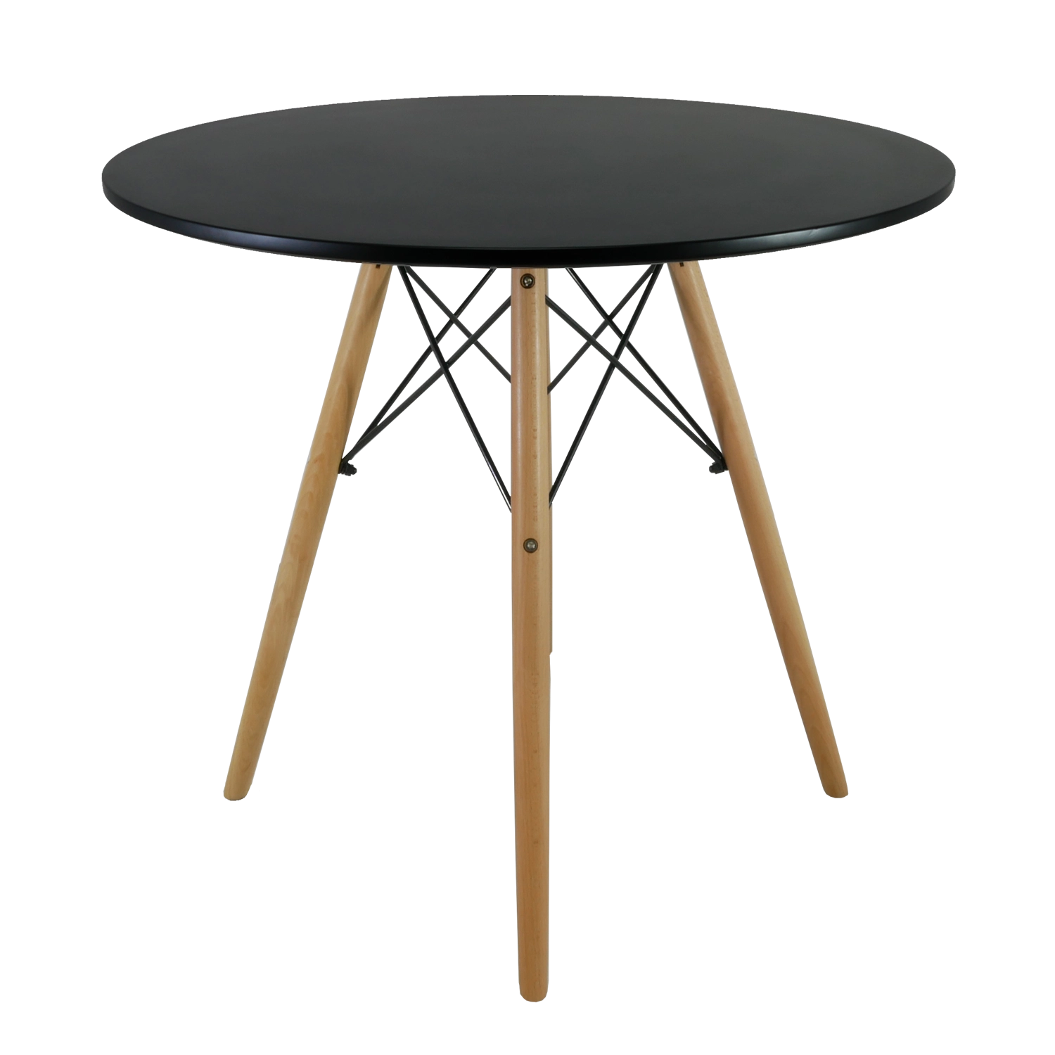 Stílusos, fekete színű kerek asztal, amely az enteriőrbe modern eleganciát és funkcionalitást visz. A matt fekete MDF asztallap, a masszív bükkfa lábak és az acél keresztmerevítés kombinációja stabilitást, tartósságot és időtálló megjelenést biztosít az étkezőbe, konyhába, nappaliba, kávézóba vagy irodába.
