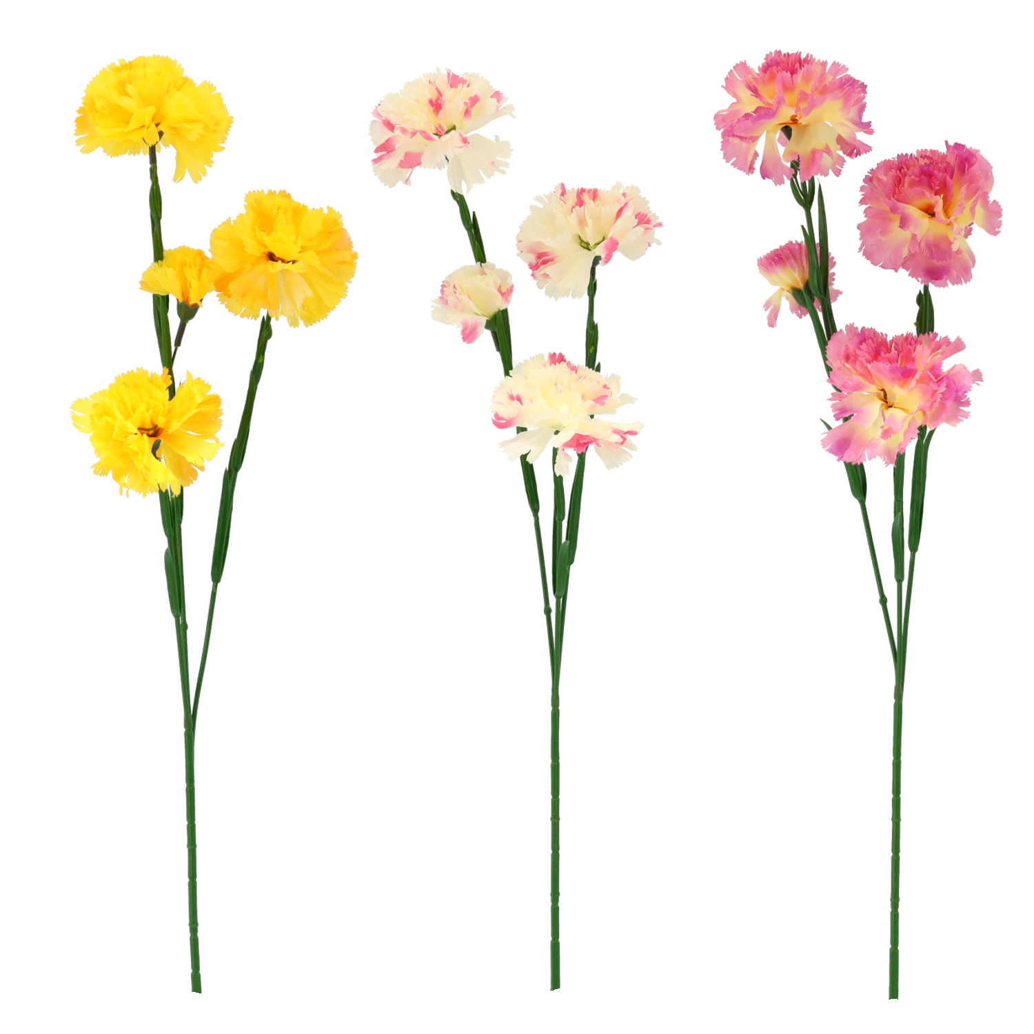 Adj eleganciát és színt az enteriőrnek a valósághű, hosszú szárú szegfűvel. Egy ág 3 telt virágot, 67 cm-es magasságot a magasabb vázákhoz, valamint színkeveréket kínál a dekorációkhoz való könnyű illesztéshez. Gondozásmentes dekoráció – mindig friss hatás öntözés nélkül.