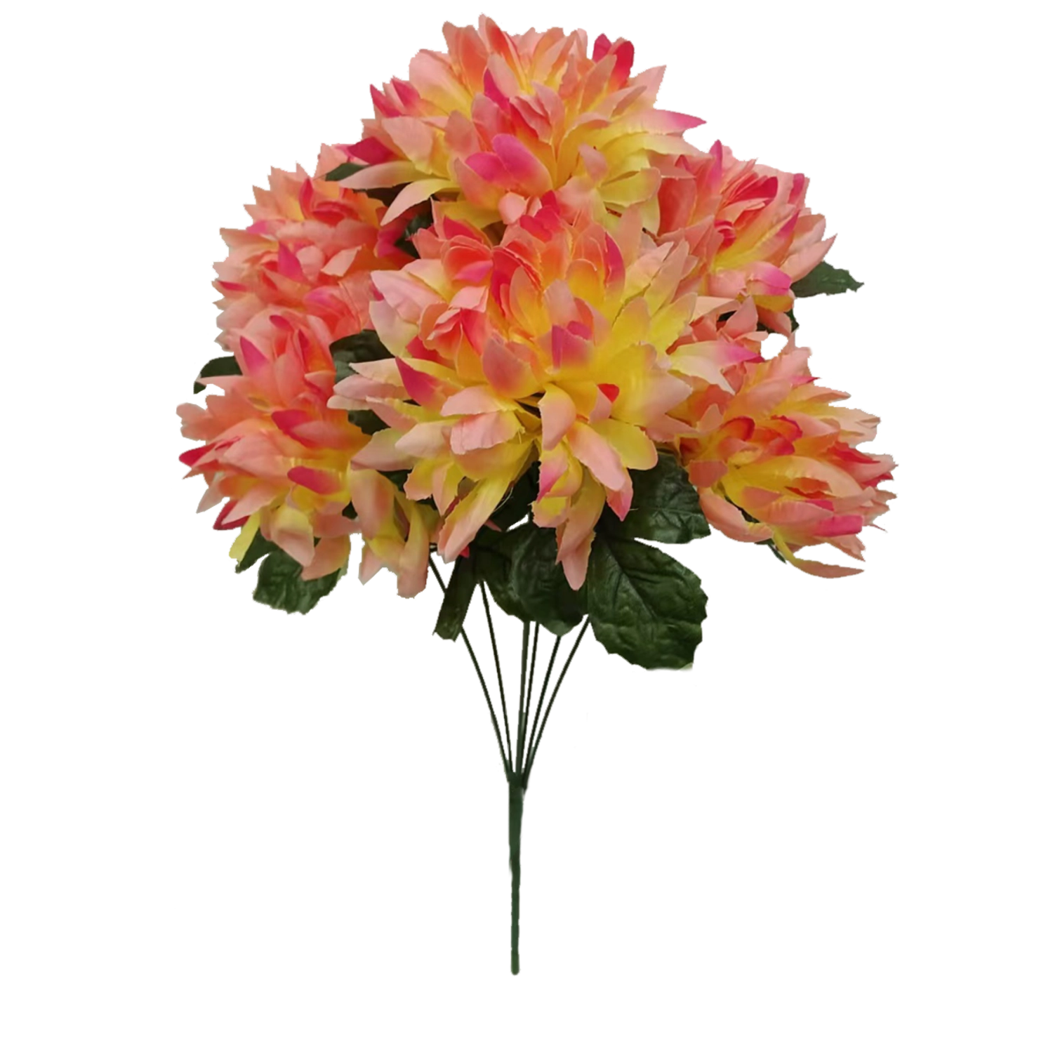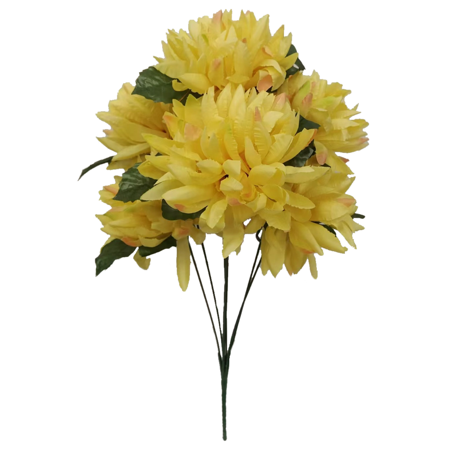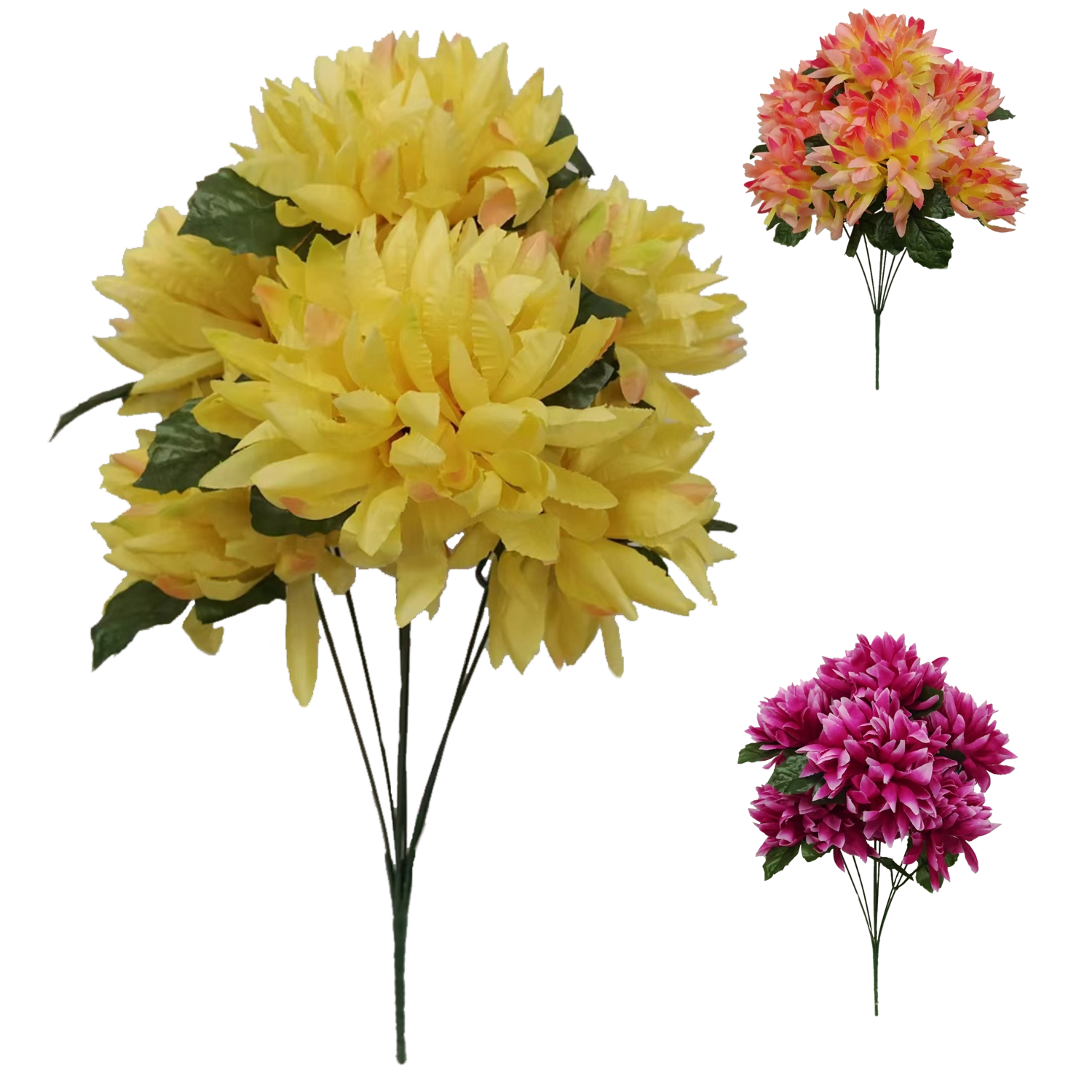 Az élethűen kidolgozott krizantémcsokor ideális választás azoknak, akik a virágok szépségét szeretnék öntözés és gondozás nélkül élvezni. A magas minőségű kivitelezés és a szirmok realisztikus részletei természetes hatást biztosítanak vázában és dekorációkban.