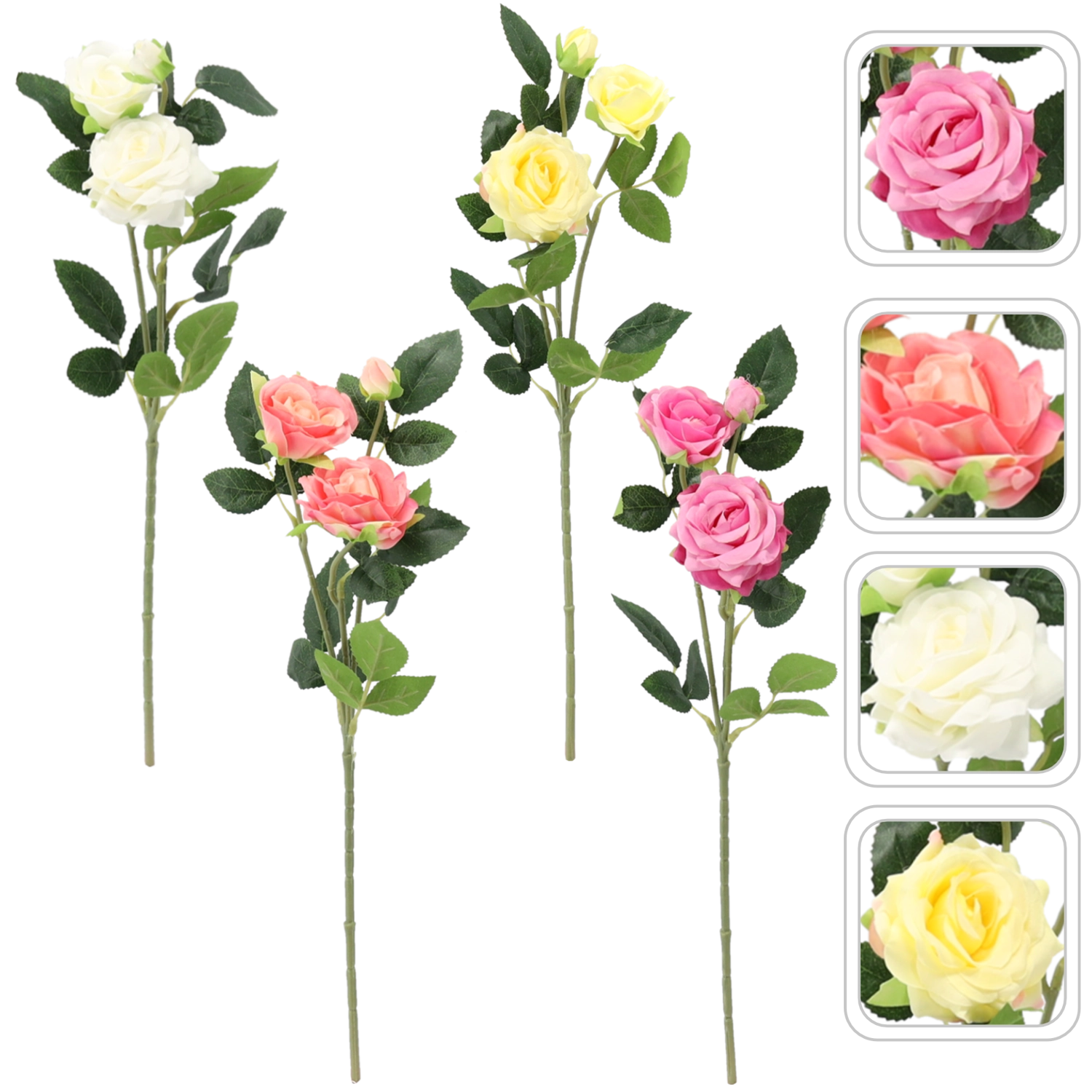 Ez a realisztikus mű rózsa finom eleganciát nyújt gondozás nélkül. Három, részletgazdagon kidolgozott virággal és stabil szárral kiválóan alkalmas vázákba, koszorúkba és DIY projektekhez. A vegyes színek modern és klasszikus enteriőrökhöz egyaránt friss kombinációkat tesznek lehetővé.