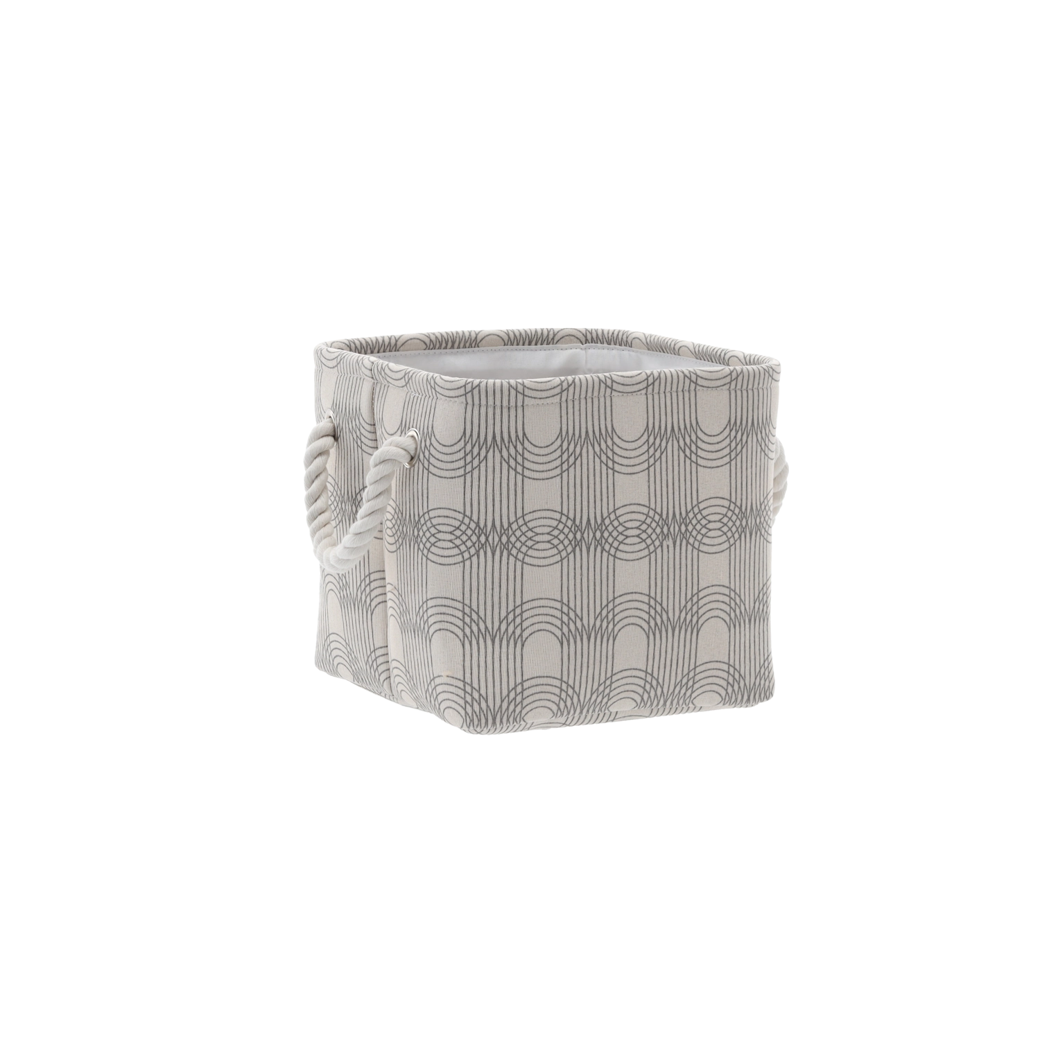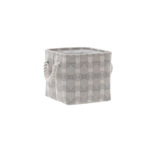 Praktikus és stílusos tároló kosár S méretben, 22 × 22 × 20 cm-es méretekkel, amely segít rendet tartani otthon és az irodában is. A masszív textilszerkezetnek, a kötél fogantyúknak az egyszerű hordozáshoz és a modern geometrikus mintának köszönhetően ideális apróságok, játékok, kiegészítők és dokumentumok számára. A kosár összehajtható, könnyű, mégis tartja a formáját.