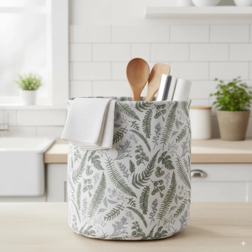 A kosár összehajtható a helytakarékos elpakoláshoz szezonon kívül, masszív oldalsó fogantyúi pedig megkönnyítik a kezelést. A semleges színvilág és a leveles minta jól illik skandináv, modern és természetközeli enteriőrökhöz – a hálószobától és mosókonyhától a gyerekszobáig.