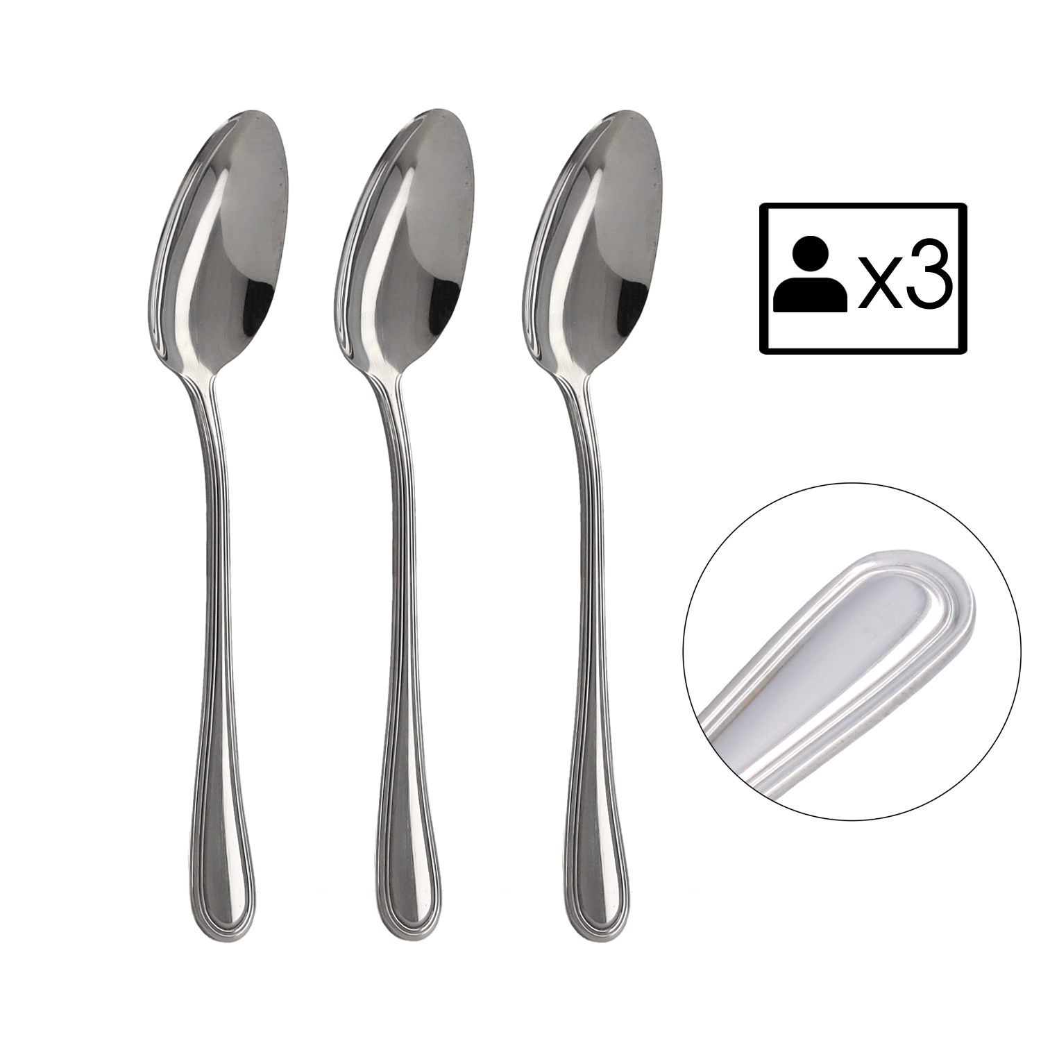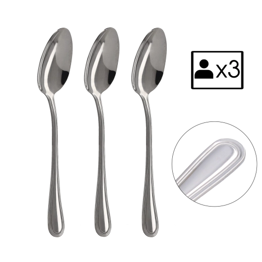 A praktikus 3 darabos csomag ideális meglévő készlet kiegészítésére vagy gyors megoldásként kisebb háztartások számára. A kanalak kiegyensúlyozott súlyúak és kényelmes fogásúak, így az étkezés komfortos és stílusos.