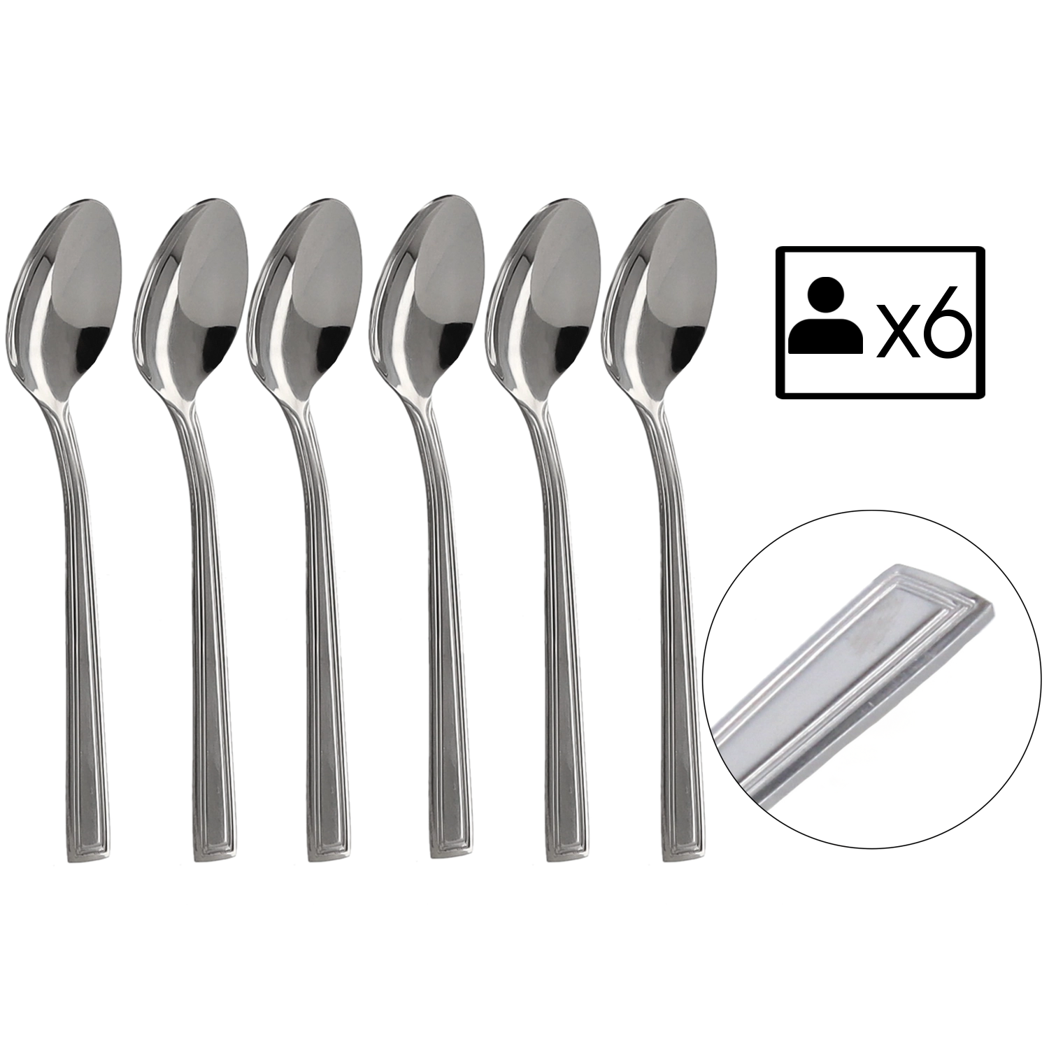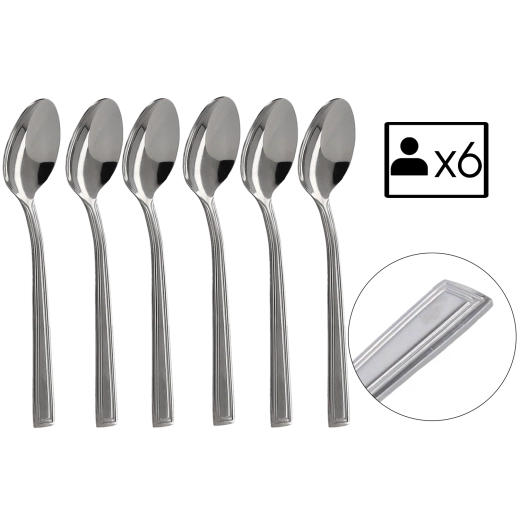 Elegáns, hat darabos Milano teáskanál készlet, kiváló minőségű rozsdamentes acélból, amely a modern megjelenést a mindennapi praktikummal ötvözi. A négyzetes nyélvég kortárs stílust kölcsönöz, míg a tartós rozsdamentes acél hosszú élettartamot biztosít. Ideális teához, kávéhoz és desszertekhez – remek választás otthoni étkezésekhez és különleges alkalmakra is.