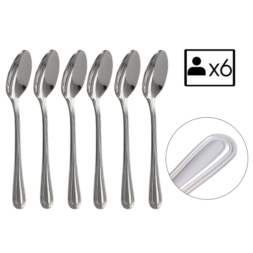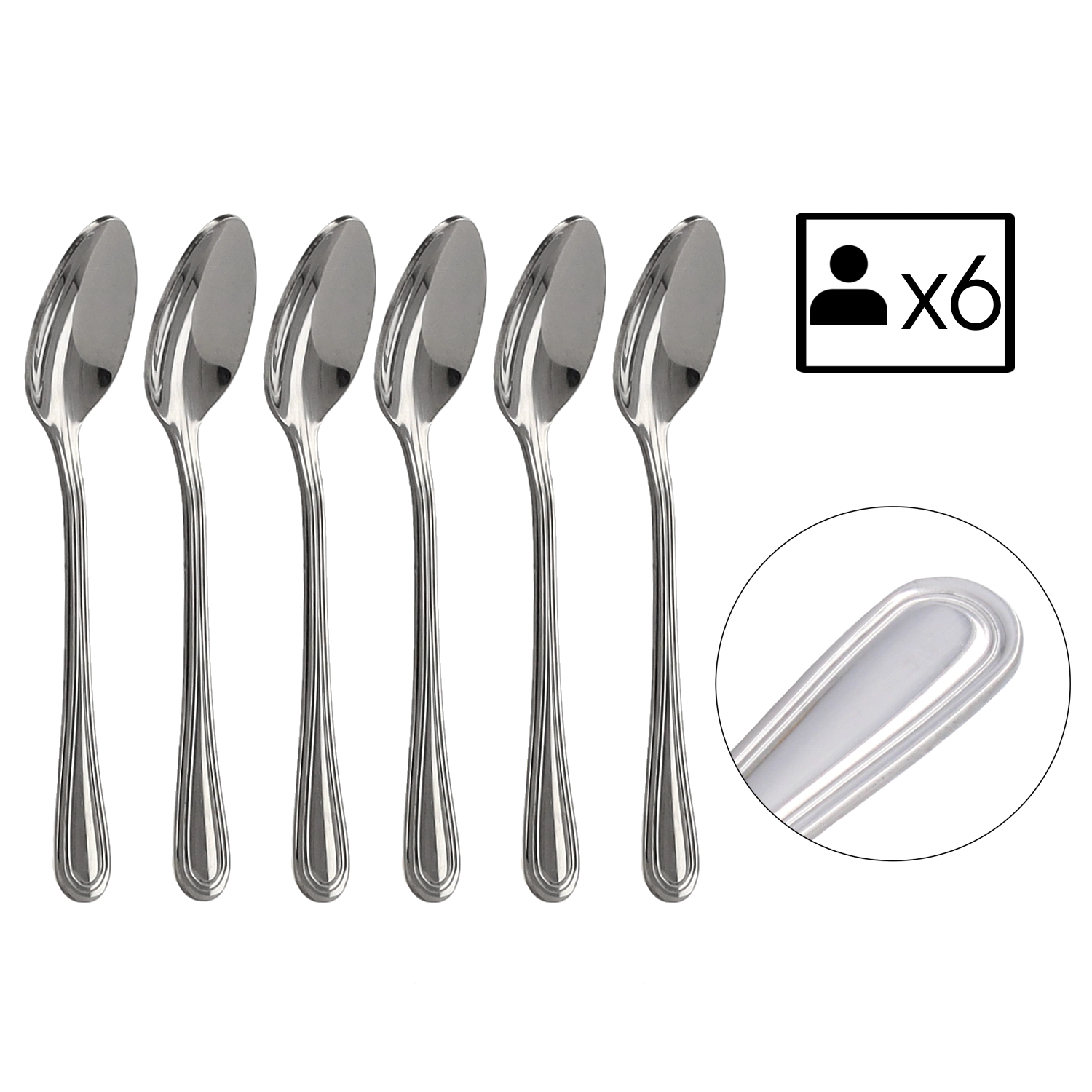 A London mokkáskanál-készlet a klasszikus megjelenést a rozsdamentes acél tartósságával ötvözi, így tökéletes a mindennapi használathoz és ünnepi alkalmakra egyaránt. A finom peremvonal visszafogott eleganciát kölcsönöz az evőeszközöknek, és könnyedén összehangolható modern és hagyományos edényekkel is.