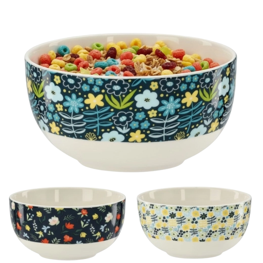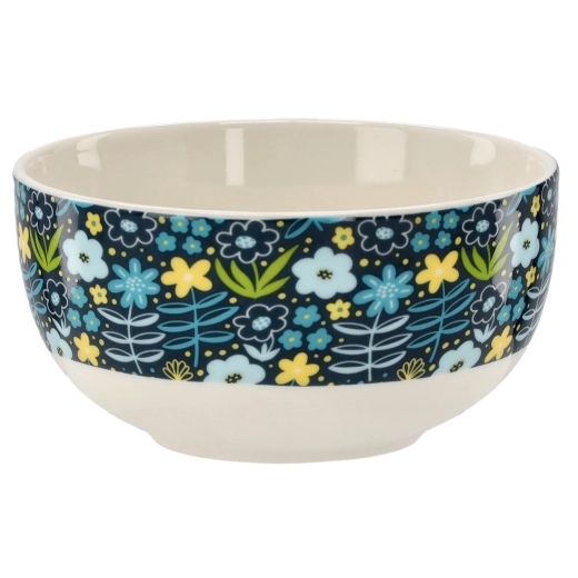Varázsoljon eleganciát az asztalára a virágmintás porcelán tállal. A fényes felület, a fehér belső és a széles, dekoratív, színes virágos sáv friss és időtálló hatást kelt. Az 550 ml-es űrtartalom ideális reggeli müzlihez, levesekhez, salátákhoz és kisebb köretekhez.