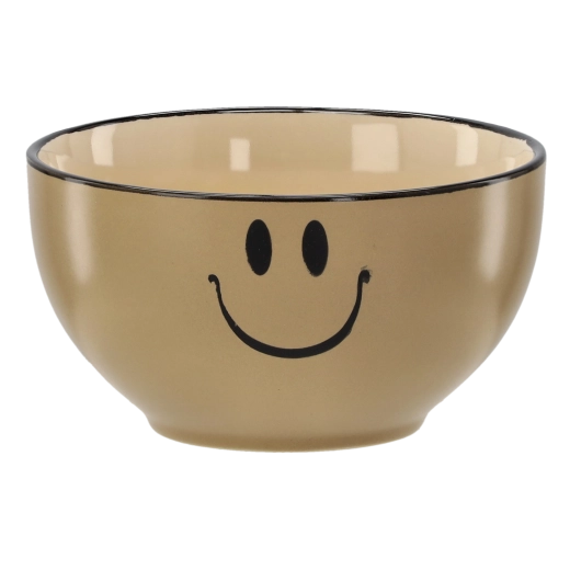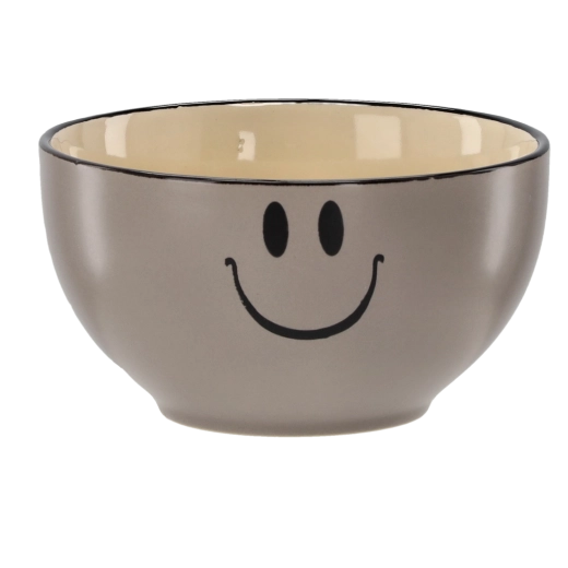 Stílusos, 550 ml űrtartalmú kerámia tál vidám smiley motívummal, amely feldobja minden étkezés hangulatát. A minőségi kerámia ellenálló a sérülésekkel szemben, simára mázolt felülete könnyen tisztítható, univerzális mérete pedig ideális levesekhez, gabonapelyhekhez és uzsonnákhoz. 4 színváltozatban kapható, így könnyen a teríték stílusához igazítható.