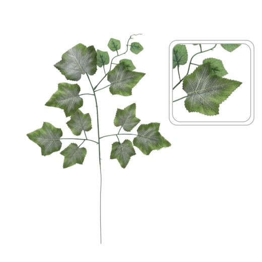Természetes hangulatot ad a belső térnek öntözés és levélhullás nélkül. A valósághű kidolgozású, telt zöld szőlőlevelek minden évszakban friss hatást keltenek, és könnyen kombinálhatók élő vagy művirágokkal. A rugalmas szárnak köszönhetően az ágakat egyszerűen meghajlíthatja, megcsavarhatja vagy rögzítheti pontosan az elrendezés igényei szerint.