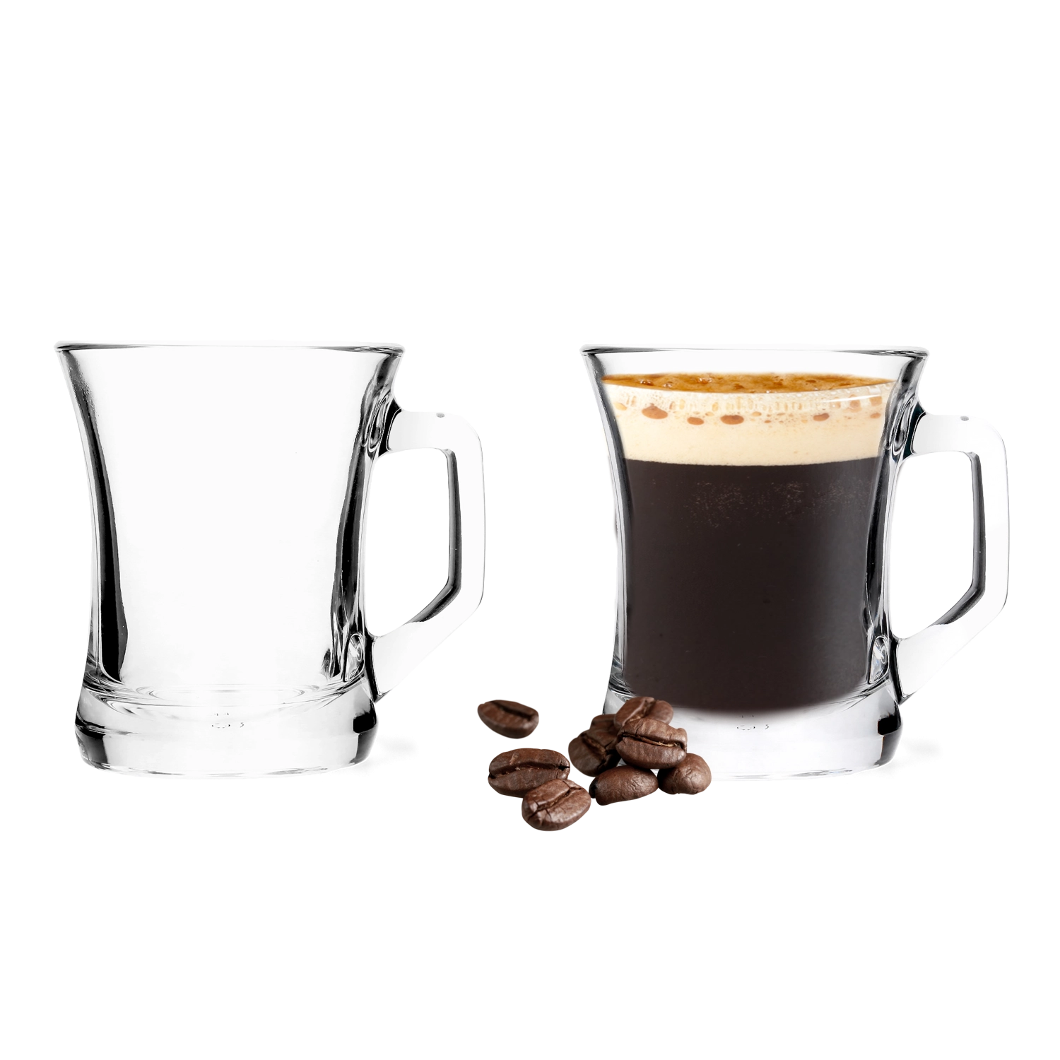 A masszív aljjal és széles füllel ellátott poharak kiválóak eszpresszóhoz, hosszú feketékhez, teához és hideg italokhoz is. Mosogatógépben moshatók.