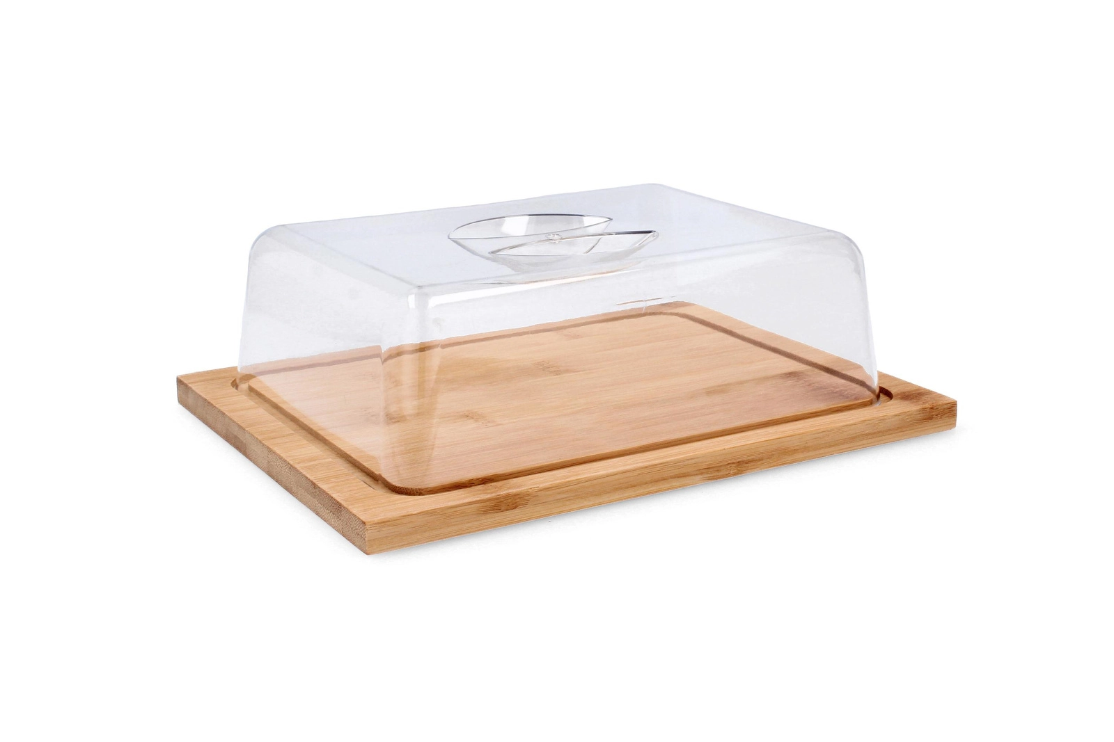 Ideális sajtokhoz, felvágottakhoz, desszertekhez és pékáruhoz. A búrán lévő integrált fogantyúval a kezelés egyszerű és higiénikus. A praktikus 25 × 19 × 7,5 cm méret helytakarékos az asztalon és a hűtőben, ugyanakkor elegendő teret kínál a mutatós tálaláshoz.