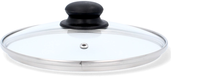 Univerzális, 20 cm átmérőjű üveg fedő edzett, strapabíró üvegből, ideális a mindennapi főzéshez. Kínál hőállóságot, praktikus gőzkivezető nyílást a felesleges pára távozásához és masszív műanyag fogantyút a biztonságos kezelhetőségért. A belső rozsdamentes perem megakadályozza a lecsapódott pára kifolyását az edényen kívülre.