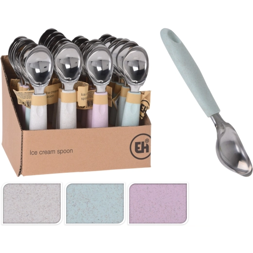 Praktikus, 18 cm hosszú fagylaltkanál a fagylalt, a szorbet és a desszertek könnyű tálalásához. Az ergonomikus kialakításnak és a masszív szerkezetnek köszönhetően a keményebb, közvetlenül a fagyasztóból kivett fagylalttal is megbirkózik. A műanyag és fém kombinációja hosszú élettartamot, alacsony tömeget és kényelmes használatot biztosít otthoni és professzionális konyhában egyaránt.