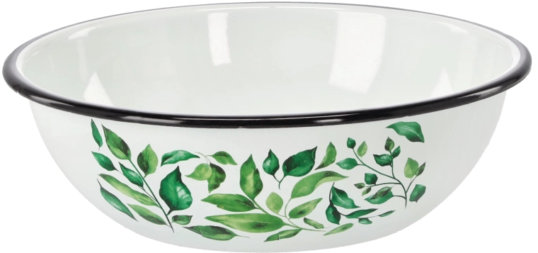 Praktikus és elegáns, 2,5 l űrtartalmú, 24,5 cm átmérőjű zománcozott tál fehér színben, gumifikusz mintával. Ideális mindennapi használatra – a tésztakeveréstől a saláták tálalásáig. A tartós zománcozott felület higiénikus, könnyen tisztítható, és nem befolyásolja az ételek ízét vagy illatát. A magas és alacsony hőmérsékletekkel szembeni ellenállósága révén sokoldalúan használható bármelyik konyhában.