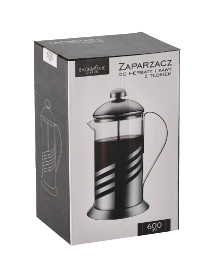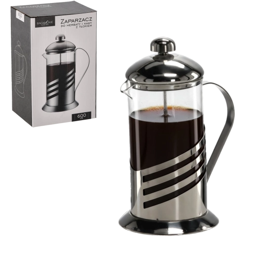 Praktikus, 600 ml-es french press friss kávé, tea és gyógynövényes főzetek készítéséhez. Az egyszerű dugattyús mechanizmusnak köszönhetően gyors, zaccmentes szűrést biztosít. A boroszilikát üveg és rozsdamentes acél elegáns kombinációja ellenáll a magas hőmérsékletnek és hosszú élettartamot garantál, miközben az ergonomikus fogantyú és a finom szűrő kényelmessé teszi a mindennapi használatot. Mosogatógépben mosható a könnyű karbantartásért.