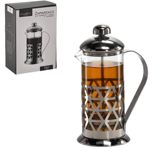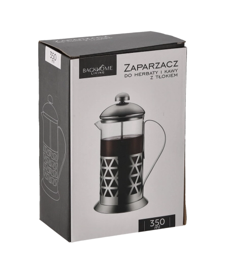 Elegáns, 350 ml-es french press a finom kávé és tea gyors elkészítéséhez. Az egyszerű dugattyús mechanizmusnak köszönhetően könnyedén elválasztható az üledék, ami tiszta és telt ízélményt biztosít. A tartós boroszilikát üveg és a rozsdamentes acél hosszú élettartamot garantál, míg a műanyag fedél és fogantyú kényelmes és biztonságos használatot nyújt. Tökéletes 1–2 adaghoz otthon és irodában.