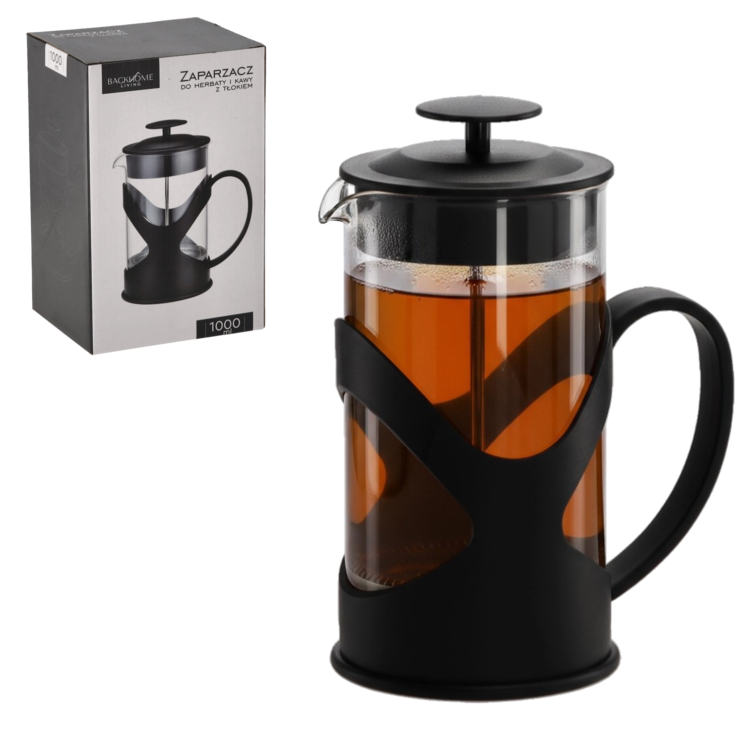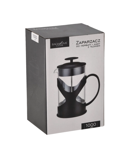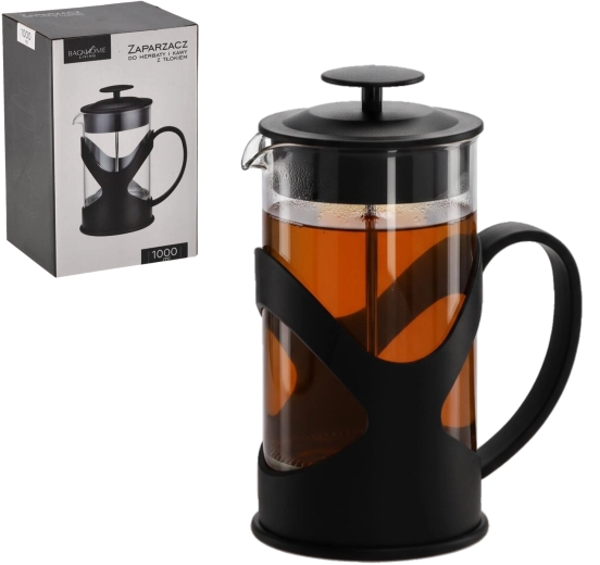 Stílusos, 1000 ml-es french press, amely praktikus segítőtárs a finom kávé, tea és gyógynövényes főzetek elkészítéséhez. A dugattyús mechanizmusnak és a finom rozsdamentes acél szűrőnek köszönhetően az ital gyorsan, tisztán és üledék nélkül készül. A boroszilikát üveg ellenáll a magas hőmérsékletnek, az ergonomikus fogantyú és a stabil talp pedig biztonságos, kényelmes használatot biztosít. Ideális a mindennapi rituálékhoz és vendéglátáshoz is.
