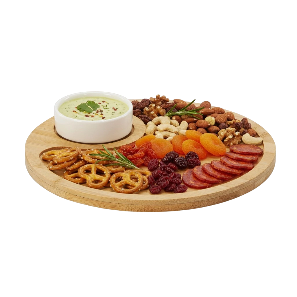 Alkalmas sajtok, felvágottak, aszalt gyümölcsök, magvak, nachos, friss zöldségek és gyümölcsök tálalására. Könnyű és tartós anyaga megkönnyíti a kezelést és a karbantartást, így tökéletes családi vacsorákhoz, baráti összejövetelekhez és a mindennapi nassoláshoz is.