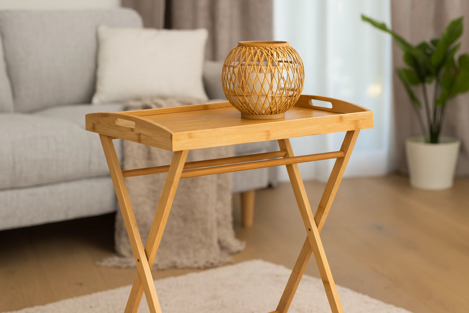 Az asztal kiválóan használható ágytálcaként, hordozható dohányzóasztalként a kanapé mellé, illetve laptop alátétként. A finom, világos árnyalatú természetes bambusz könnyen karbantartható, könnyű és környezetbarát – tökéletes választás modern és skandináv enteriőrökbe.