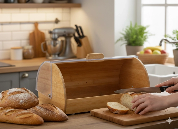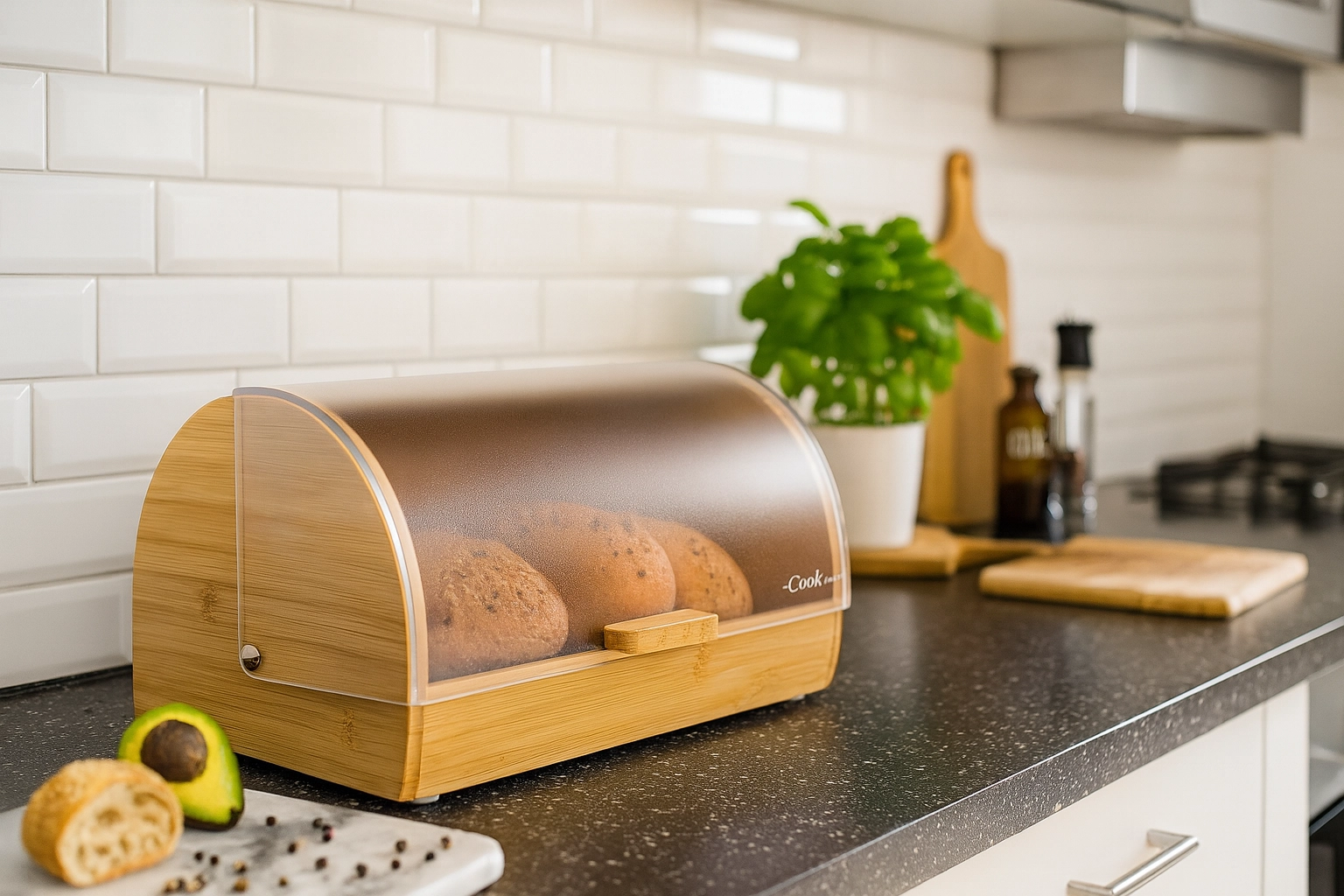 Elegáns MENTA kenyértartó minőségi bambuszból, félátlátszó rolós fedéllel, amely a pékárut tovább tartja frissen, és védi a portól valamint a kiszáradástól. A nagylelkű kapacitás elfér benne egy cipó, kiflik és péksütemények is, míg az ergonomikus fogantyú kényelmes nyitást biztosít. Az időtlen, modern dizájn remekül illik bármely konyhába.