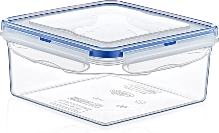 Praktikus, 1,3 l űrtartalmú tároló mindennapi élelmiszer-tároláshoz. Négyzet alakjának és 17 × 17 × 8 cm-es méreteinek köszönhetően könnyen elfér a hűtőben és a fagyasztóban is. Az átlátszó falak gyors tartalomellenőrzést tesznek lehetővé, míg a négy erős klipsz és a szilikon tömítés gondoskodik a hermetikus zárásról és a hosszabb frissességről. -25 °C-tól +95 °C-ig ellenáll a hőmérsékletnek, ezért alkalmas fagyasztóba, mikrohullámú sütőbe és mosogatógépbe is.