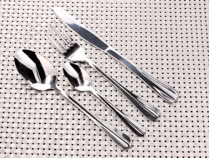 A 24 darabos szett mindent tartalmaz, amire szükség van: kések, villák, leveseskanalak és teáskanalak.