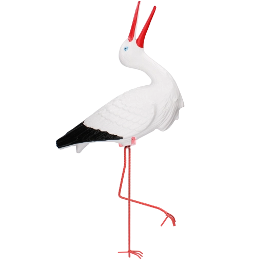 Stílusos, kis méretű műanyag gólyafigura, ideális választás kertek, parkok és tavacskák környezetének feldobásához. A valósághű részletek és a gondos kézi festés kiemelik természetes megjelenését, amely első pillantásra magára vonja a figyelmet. Minőségi anyagainak köszönhetően a figura felkészült a napfényre, esőre és fagyra, és hosszú távon megőrzi színeit.