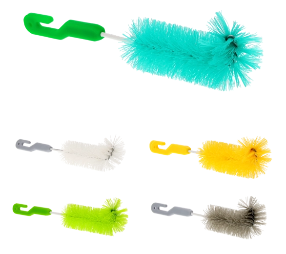Praktikus palack- és pohárkefe 0,25 l űrtartalmú edényekhez a keskeny nyakak könnyű és higiénikus tisztításához. A speciálisan formázott fejnek és a minőségi szintetikus szálaknak köszönhetően hatékonyan eléri a nehezen hozzáférhető helyeket is. Ergonomikus markolat akasztólyukkal a könnyű felakasztáshoz, tartós anyag a szokásos tisztítószerekkel szemben, hosszú élettartam.