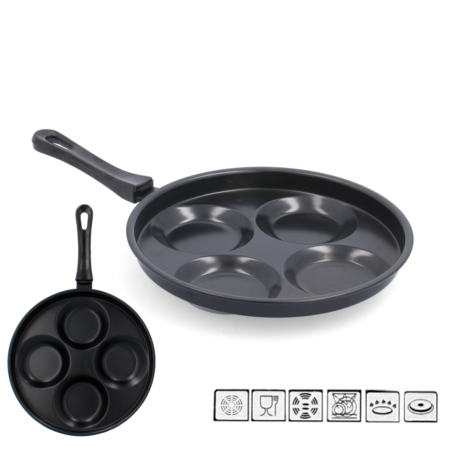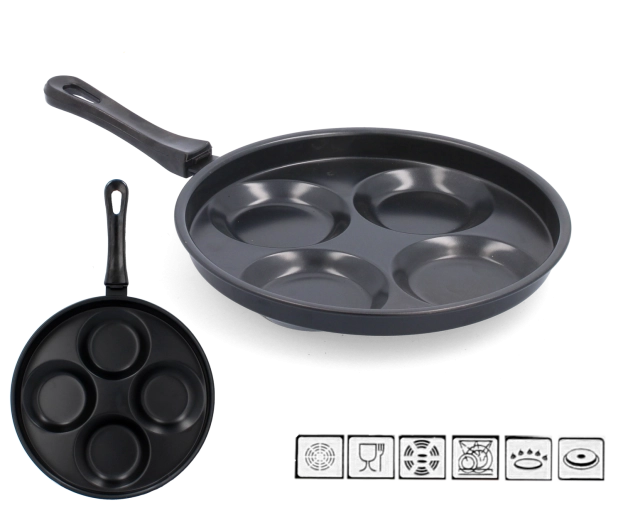Praktikus, 24 cm átmérőjű tojássütő serpenyő tartós szénacélból, tapadásmentes bevonattal a könnyű sütéshez leégés nélkül. Az ergonomikus műanyag nyél kényelmes és biztonságos fogást biztosít, míg a külső, hőálló felület növeli a tartósságot a mindennapi használat során.