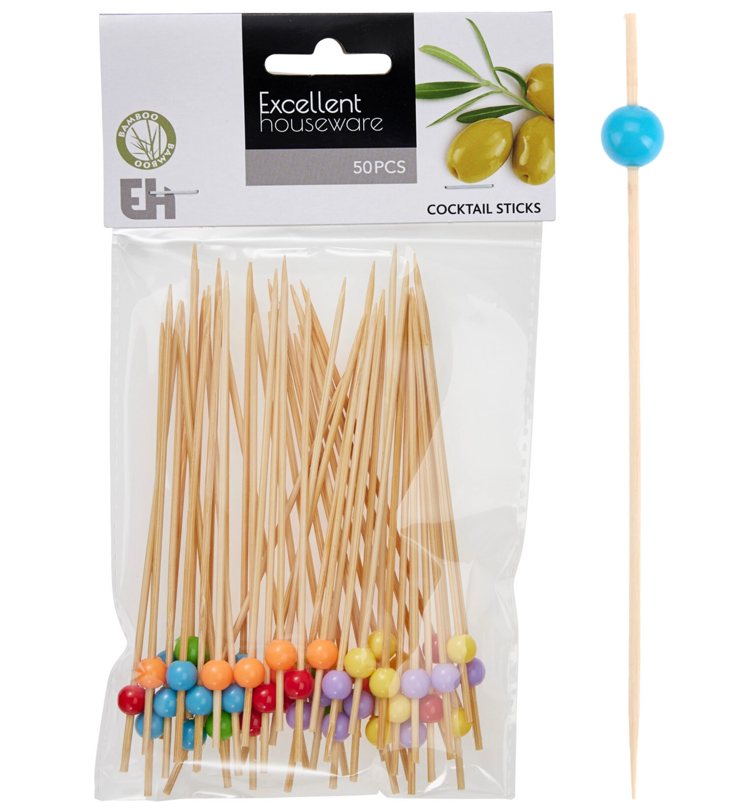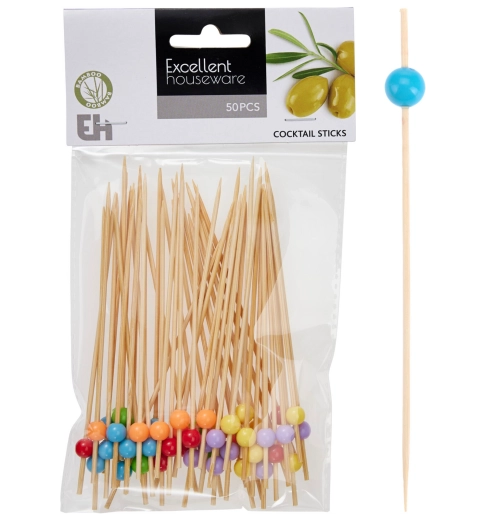 Stílusos, 8 cm hosszú koktélpálcika-készlet, ideális minden ünnepséghez és otthoni vendéglátáshoz. Minőségi bambuszból készült, erős, környezetbarát, és kényelmes fogást biztosít a végén található színes golyóknak köszönhetően. Remek választás falatokhoz, sajtokhoz, gyümölcsökhöz és koktélok díszítéséhez. A csomag 50 darabot tartalmaz – elegendő kisebb és nagyobb rendezvényekre is.