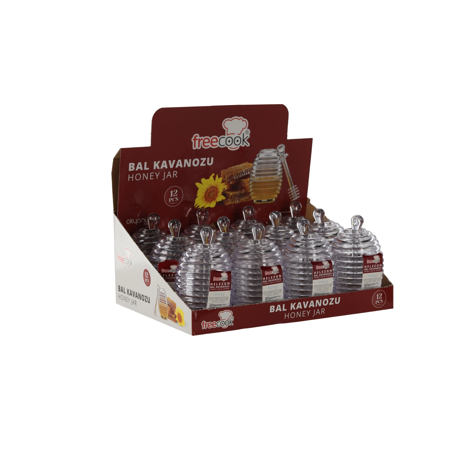 Ez a kompakt tartó minőségi műanyagból készült, és úgy tervezték, hogy megőrizze a méz frissességét és illatát. A csomag része egy praktikus mézkanál, amellyel kényelmesen adagolható a méz felesleges rendetlenség nélkül. A méhkaptár mintájú dekoráció vonzó megjelenést ad, és díszíti bármelyik konyhai polcot.