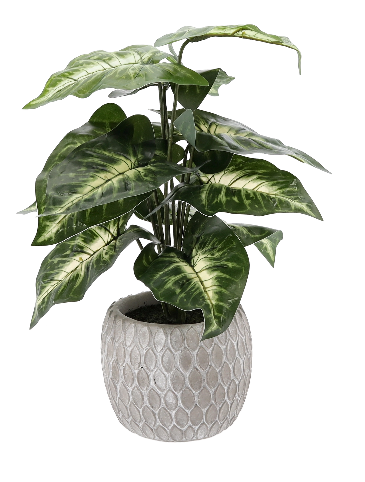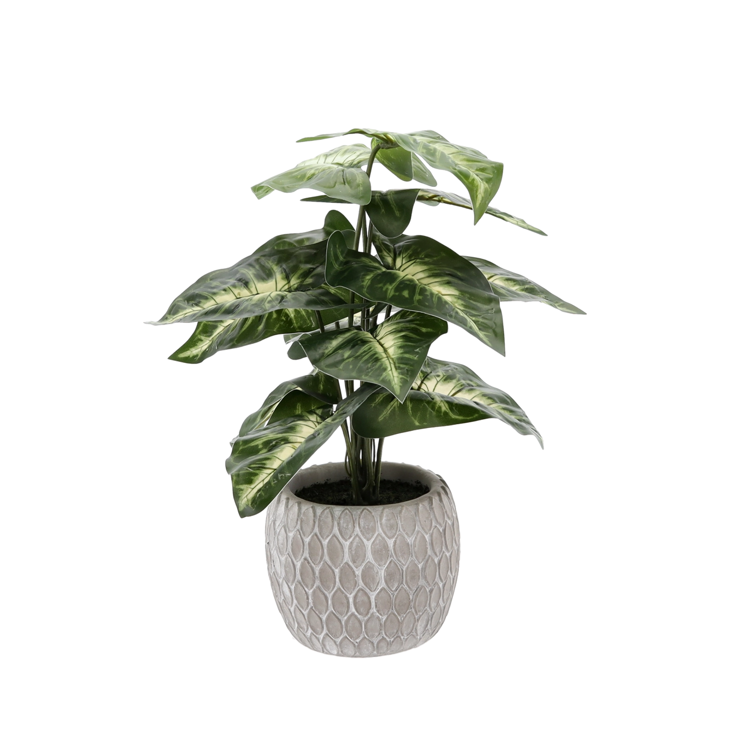 Ez az elegáns műnövény természetes hatású akcentust visz bármely térbe, öntözés és gondozás szükségessége nélkül. A több száron elhelyezkedő, élethű formájú és színárnyalatú levelek egész évben frissnek hatnak, míg a finoman texturált, szürke kaspó stílusosan illik modern és klasszikus enteriőrökhöz is.