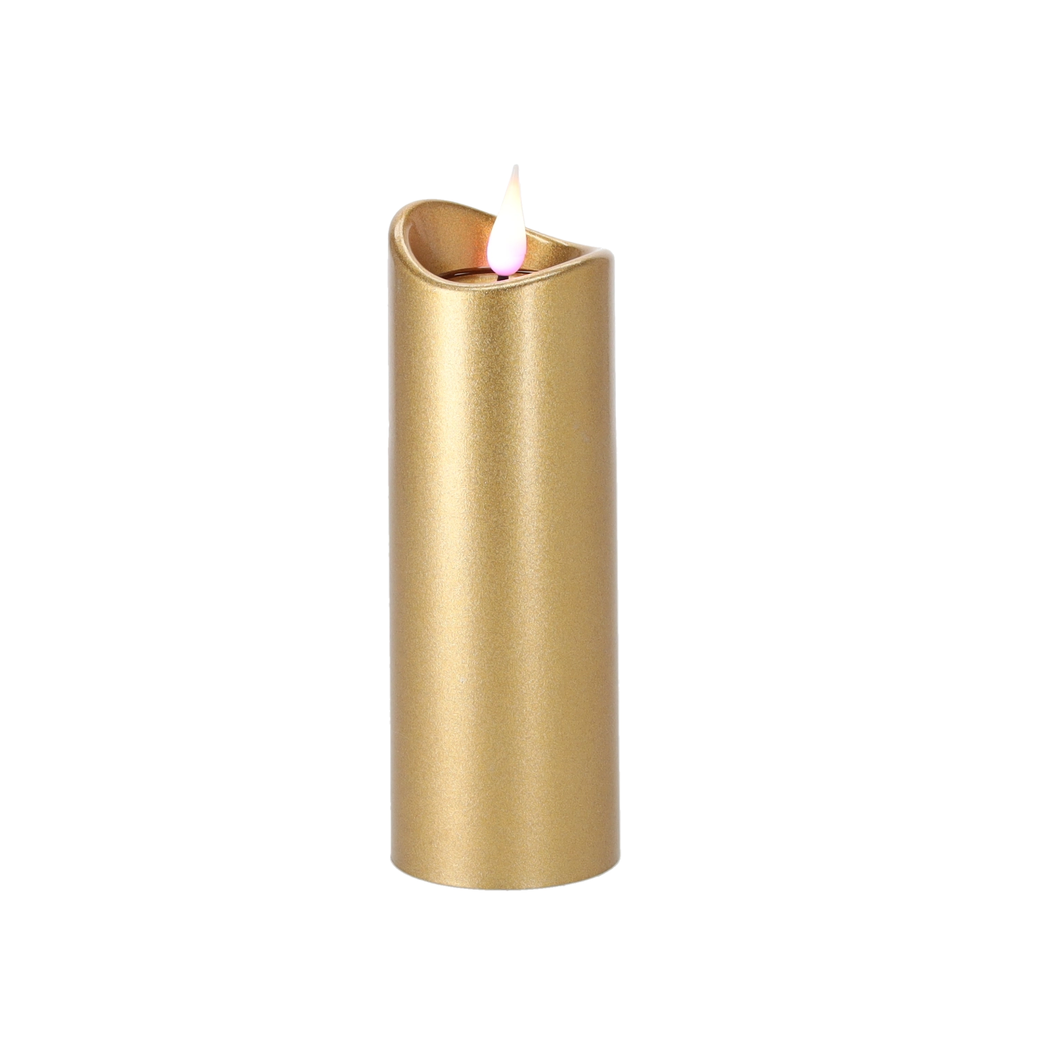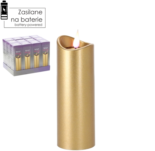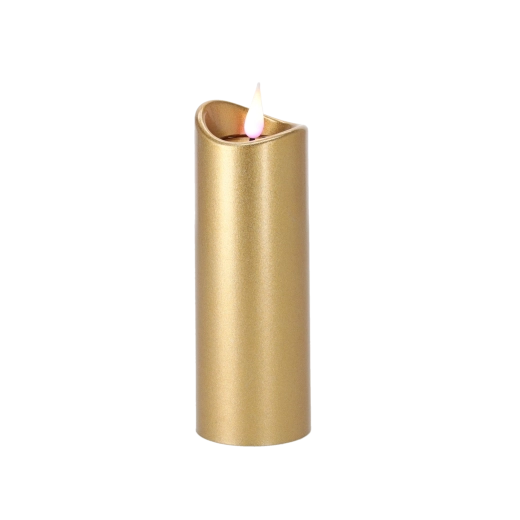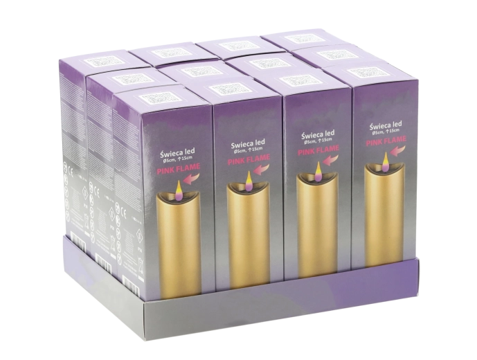 Elegáns, 5 × 15 cm méretű LED gyertya luxus arany színben, rózsaszín láng hatással. Biztonságos, hosszan tartó és energiahatékony megvilágítást kínál elemes működéssel, az elemek a csomag részét képezik. Remek dekoráció beltérre és megemlékezési helyekre egyaránt.