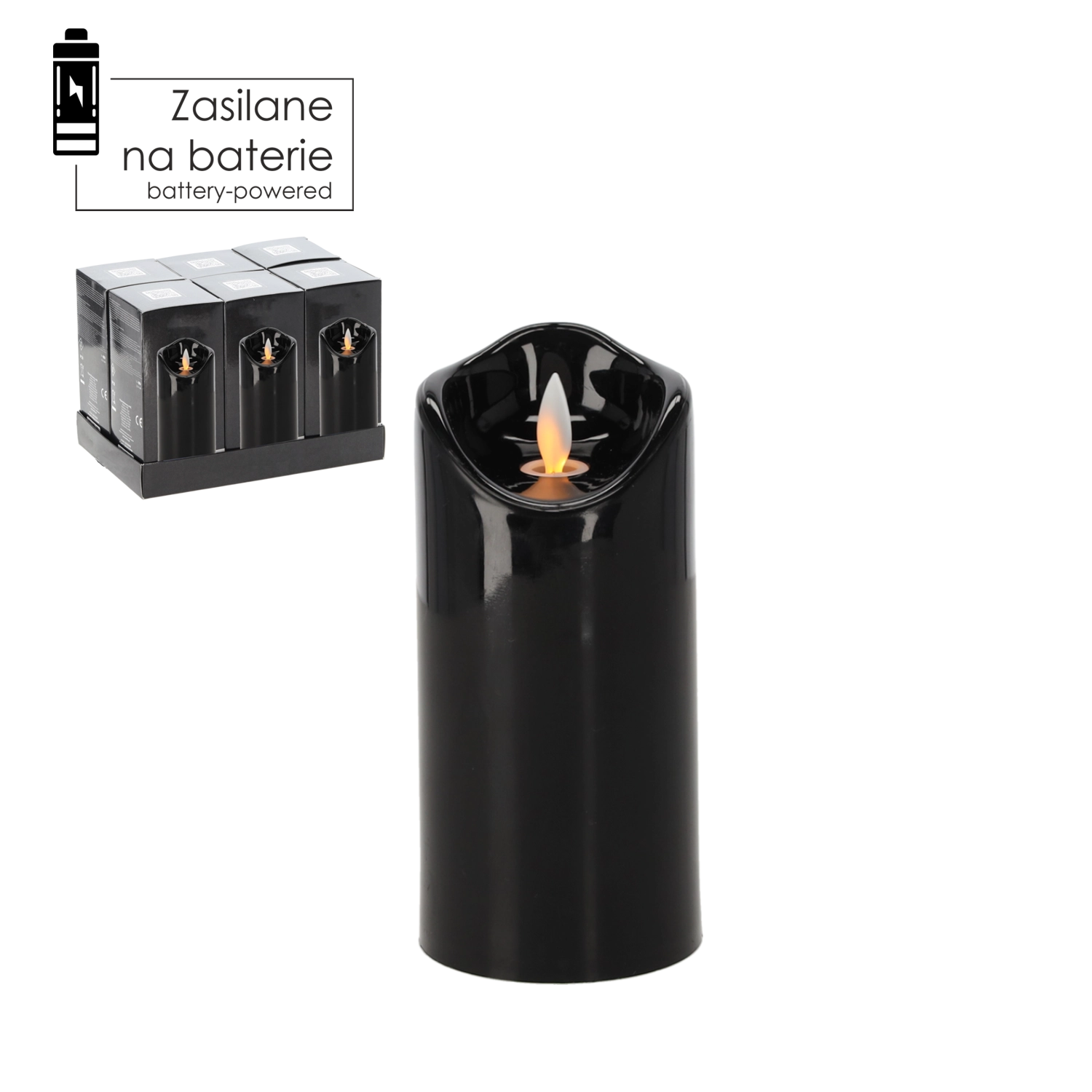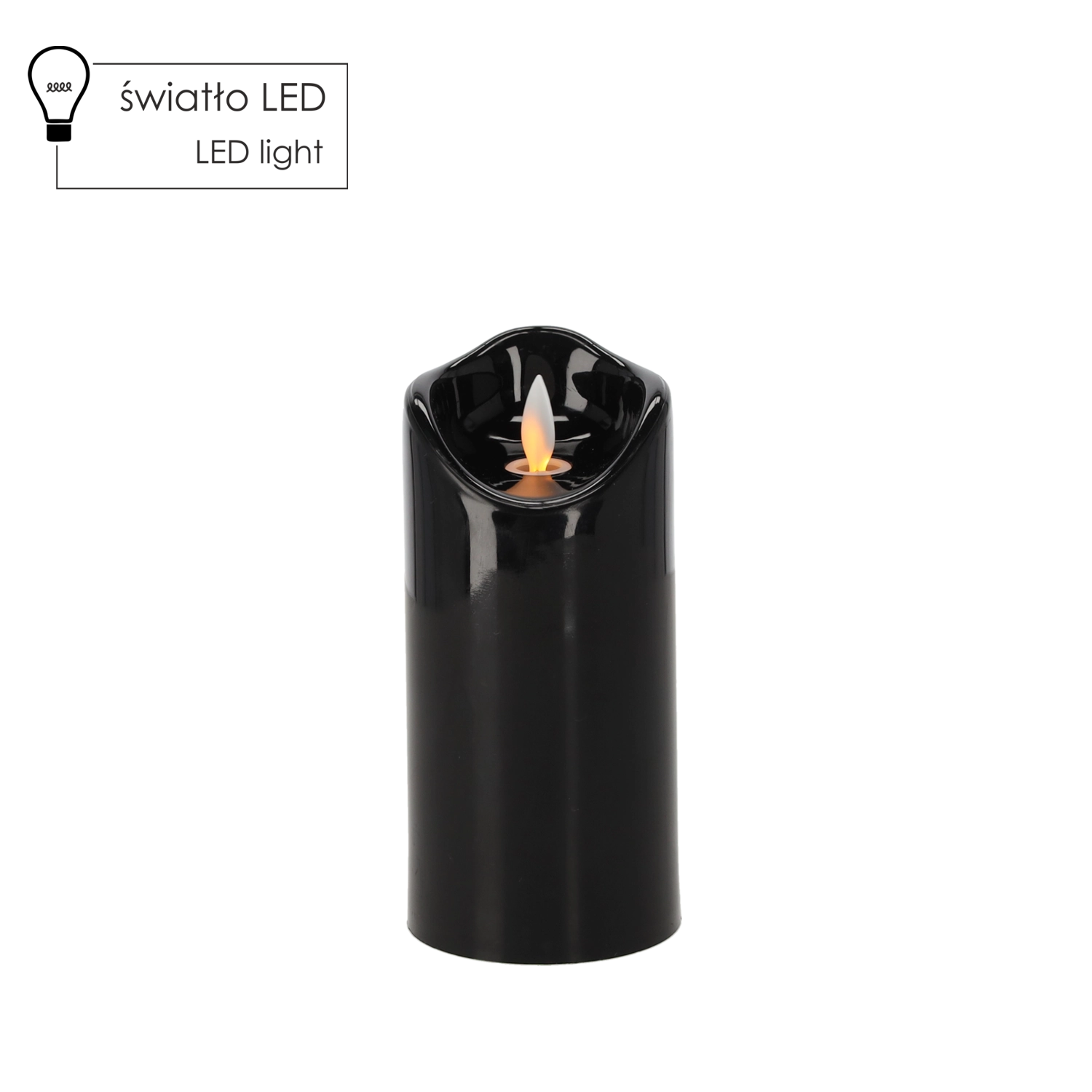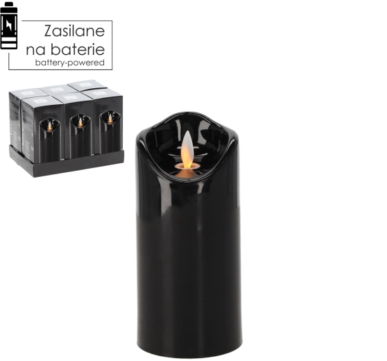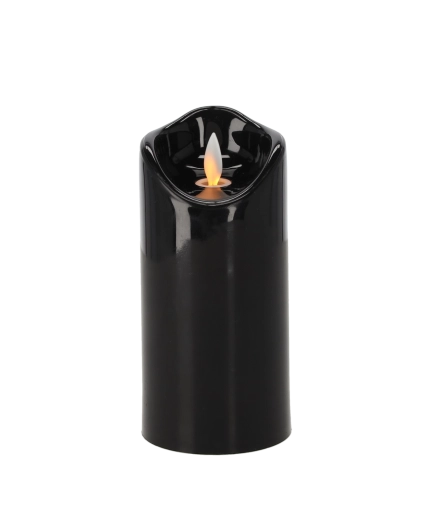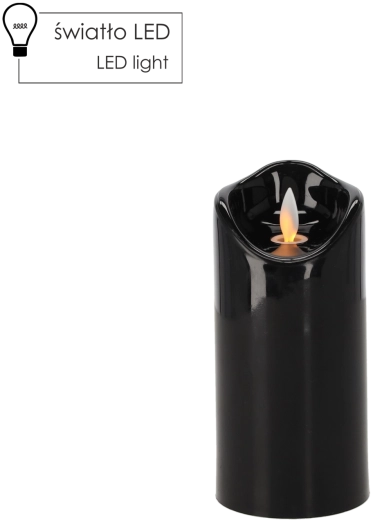 Elegáns fekete színű LED gyertya 7 × 15 cm méretben, amely realista, mozgó lánghatást kínál, élethűen utánozva az igazi gyertya fényét. Biztonságos, karbantartásmentes, és ideális beltéri dekorációnak és kegyeleti helyekre is, füst és rendetlenség nélkül.