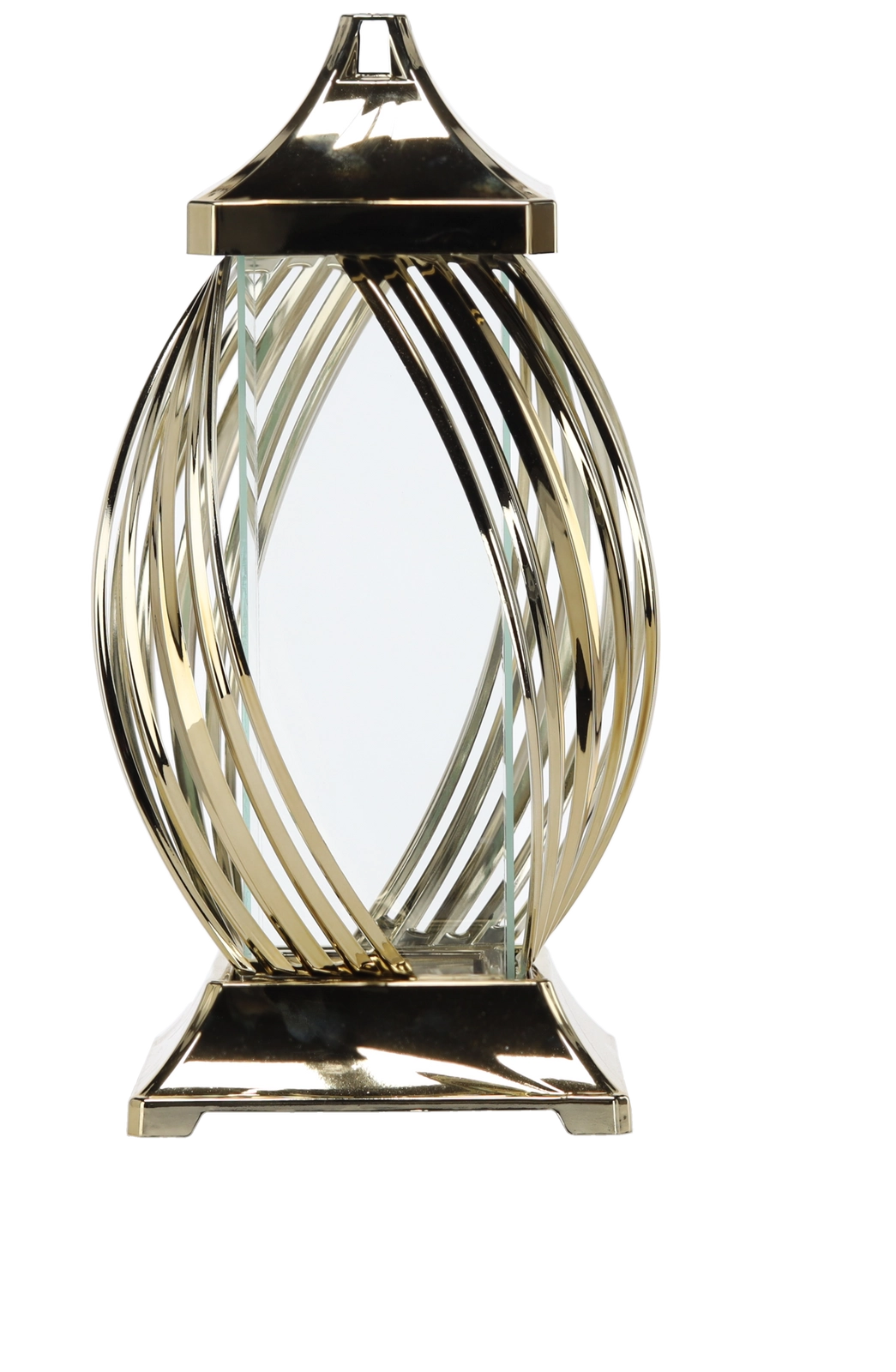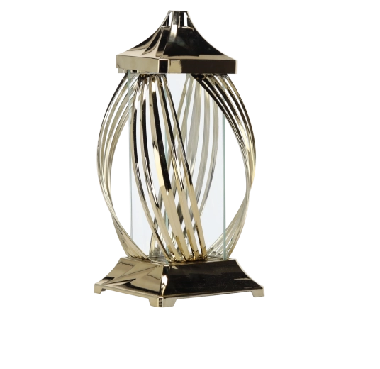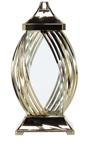 Ez a dekoratív fém lampion modern szalagmintájával és fényes metál felületével hívja fel magára a figyelmet. Az átlátszó oldalfalak átengedik a gyertya vagy LED fényét, így meghitt és elegáns világítást teremtenek. Masszív felépítése a négyszögletes talppal stabilitást biztosít, a felső fogantyú pedig megkönnyíti a hordozást vagy felakasztást.
