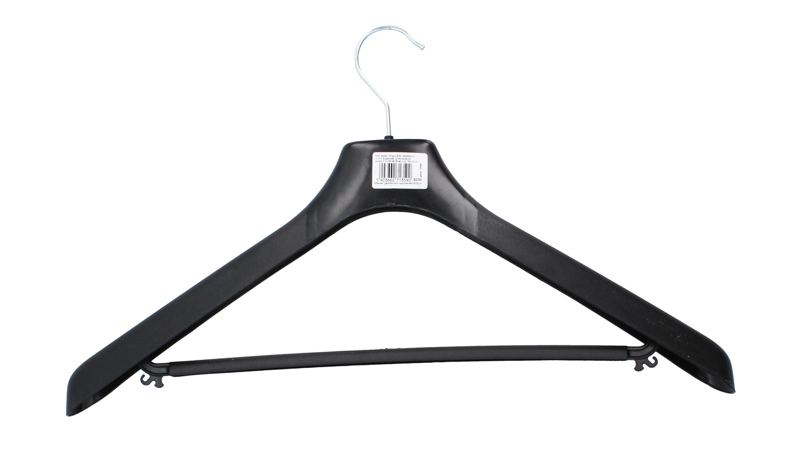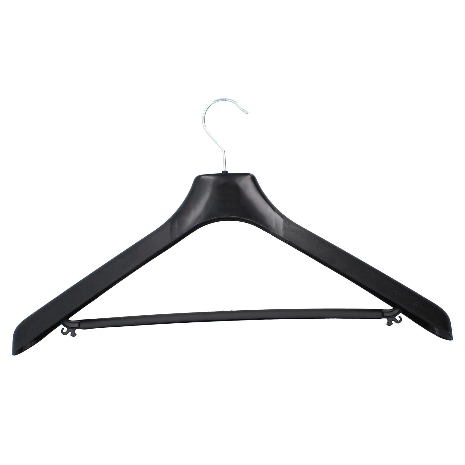 Praktikus és tartós vállfa 50 cm hosszban, széles, formázott vállrésszel, amely megőrzi a zakók, kabátok és nehezebb ruhák formáját. Az integrált nadrágrúd teljes körű gondoskodást nyújt az öltönynek, míg az csúszásgátló felület megakadályozza a finom anyagok lecsúszását. A fém, forgatható akasztó megkönnyíti a mindennapi kezelést és felakasztást.