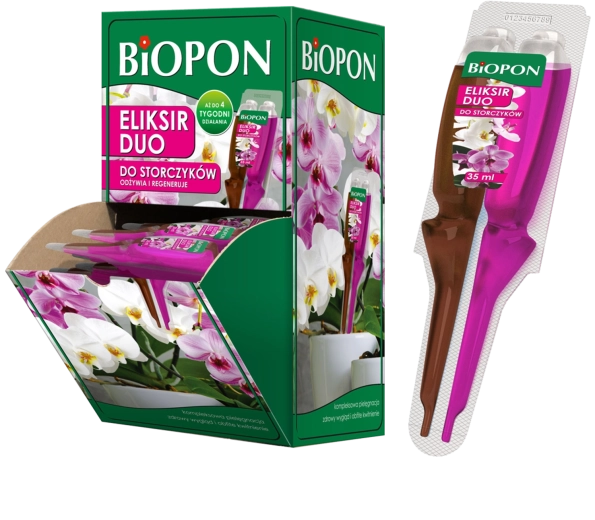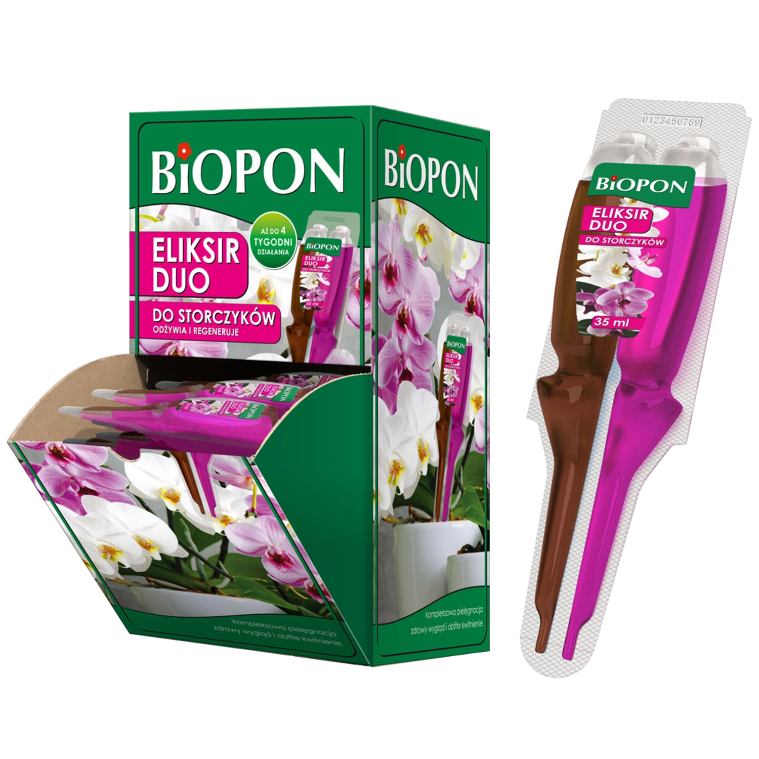 A Biopon Elixír Duo rózsaszín, alapvető tápanyagokat tartalmazó összetevőt egyesít a bőséges virágzásért és egészséges növekedésért, valamint egy barna regeneráló oldatot, amely erősíti a gyökereket, segít a növényeknek jobban kezelni az átültetésből vagy nem megfelelő gondozásból eredő stresszt, és helyreállítja természetes egyensúlyukat. A különálló kamráknak köszönhetően az aktív anyagok tovább maradnak hatékonyak, és csak a szubsztrátumban keverednek össze a maximális felszívódás érdekében.