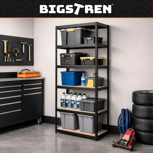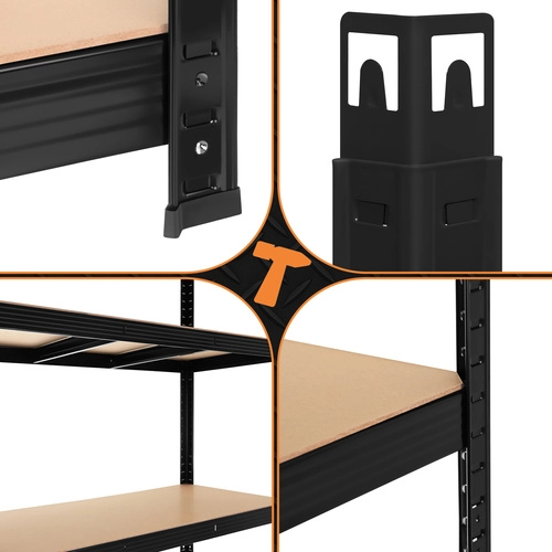 A masszív BIGSTREN fém polcrendszer extra magas, akár 200 kg/polc teherbírást és összesen 1000 kg-ot kínál. A csavarmentes összeszerelést pillanatok alatt elvégezheti, az MDF polcok dupla merevítéssel rendelkeznek, a porszórt acél pedig korrózióállóságot biztosít. Ideális megoldás garázsba, műhelybe, pincébe és raktárba.