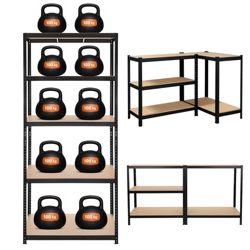 Fém polcrendszer műhelybe és garázsba 220 × 100 × 45 cm, 5 polc, 1000 kg teherbírás, BIGSTREN – fekete