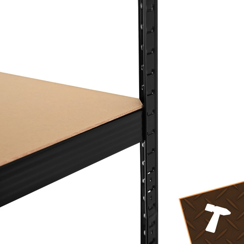 Erős és rugalmas tárolómegoldást keres szerszámokhoz, gumikhoz, dobozokhoz vagy készletekhez? Ez a fekete színű, magas BIGSTREN polcrendszer 5 állítható MDF polccal és dupla merevítésekkel gondoskodik a nagyon nehéz tárgyak biztonságos tárolásáról. A porszórt acél ellenáll a nedvességnek és a kopásnak, a csavarmentes rendszernek köszönhetően pedig a szerelés egyszerűen elvégezhető egy gumikalapáccsal.