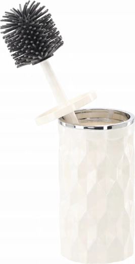 Minden elem átgondolt méretekkel rendelkezik a praktikus használathoz: kompakt szemetes a könnyű kezelhetőségért, higiénikus WC-kefe fedéllel, kényelmes pumpás adagoló, fogkefe- és fogkrémrendszerező, valamint szappantartó, amely a szilárd szappant a helyén tartja.
