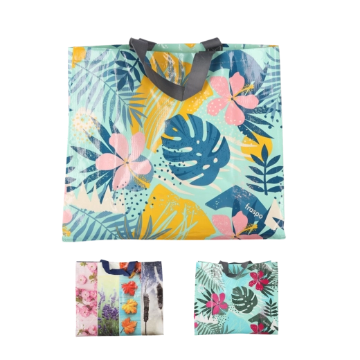 A 36 literes, strapabíró bevásárlótáska kiváló egyensúlyt kínál a kapacitás és a kompakt tárolhatóság között. A szőtt, laminált polipropilén hosszú élettartamot, magas szakadásállóságot és egyszerű karbantartást biztosít – elég nedves ruhával letörölni. A kényelmes füleknek köszönhetően teljes terhelés mellett is jól hordható.