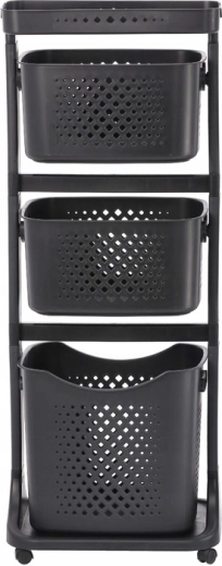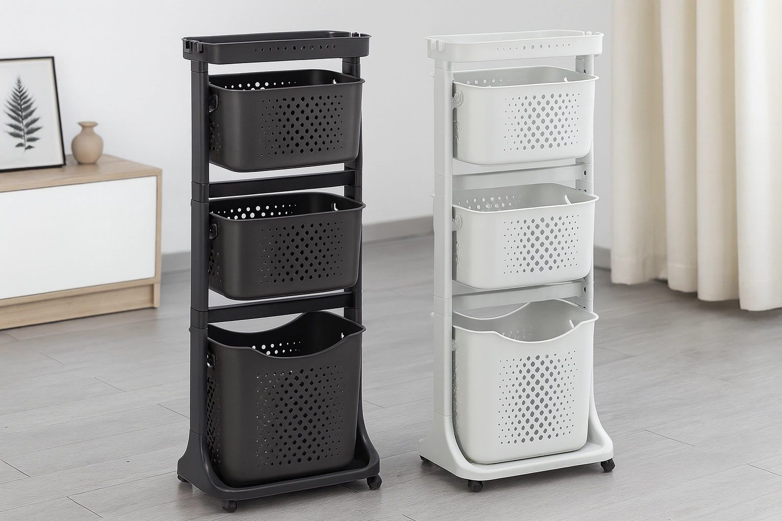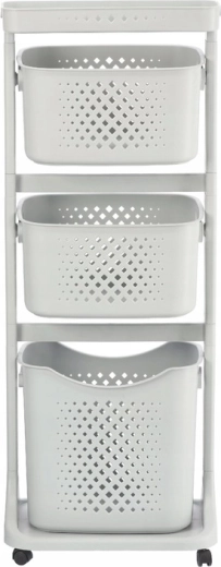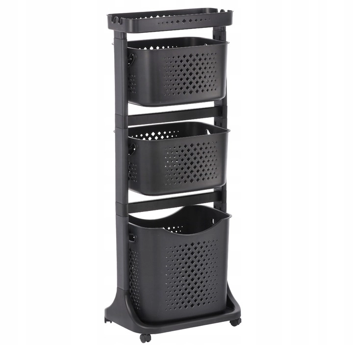 Praktikus és stílusos segítőtárs minden háztartásba: gurulós állvány négy tágas kosárral, felső lerakópolccal és kerekekkel a könnyű áthelyezéshez. A szellőző, perforált kosaraknak, a karcsú, vertikális kialakításnak és az univerzális dizájnnak köszönhetően tökéletesen illik fürdőszobába, konyhába, mosókonyhába, gyerekszobába és irodába is.