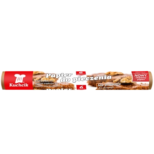 A Kuchcik sütőpapír minőségi, szilikonozott papírból készült, amely egyenletes sütést biztosít az odaégés kockázata nélkül. A speciális szilikonrétegnek köszönhetően megőrzi az ételek természetes illatát és ízét, és megkönnyíti azok könnyű levételét a tepsiről vagy a formáról.
