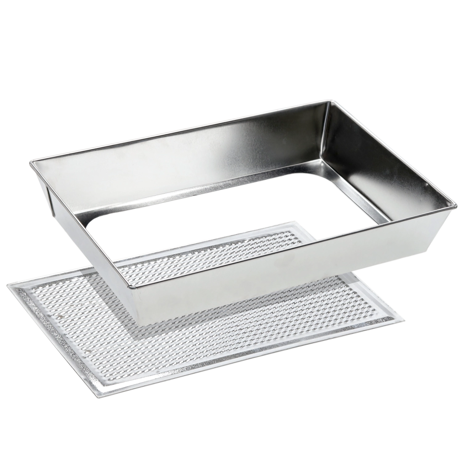 Ez a masszív, 36 × 24,5 × 6 cm-es sütőforma kiválóan alkalmas piték, szeletek, mézeskalácsok és sós felfújtak készítésére. A kivehető alj kényelmes kiemelést tesz lehetővé, így nem kell tartani a szakadozott peremtől vagy a sérült tésztalaptól. Az ónozott lemeznak köszönhetően a forma tartós, és jól vezeti a hőt az egyenletes átsülésért.