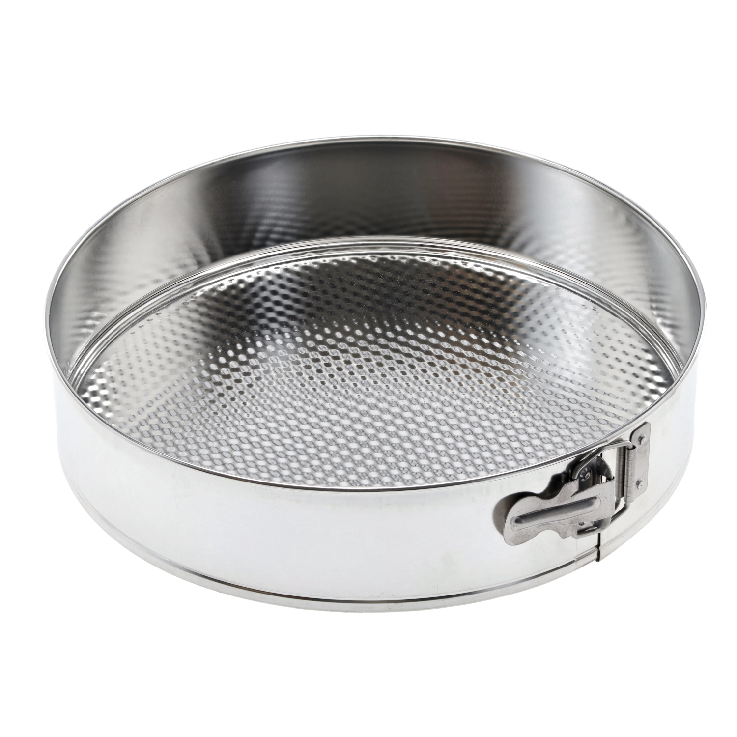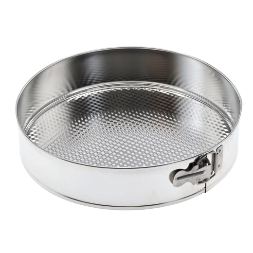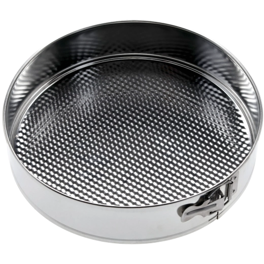 Ez a kerek, 30 cm átmérőjű SNB tortaforma kiváló választás otthoni és professzionális sütéshez egyaránt. A levehető oldalfalak és a különálló alj lehetővé teszik a törékeny desszertek sérülésmentes, kényelmes kiemelését. A strukturált alj elősegíti az egyenletes sütést és csökkenti a tapadást, így a desszertek könnyebben kifordíthatók, a forma pedig egyszerűbben tisztítható.