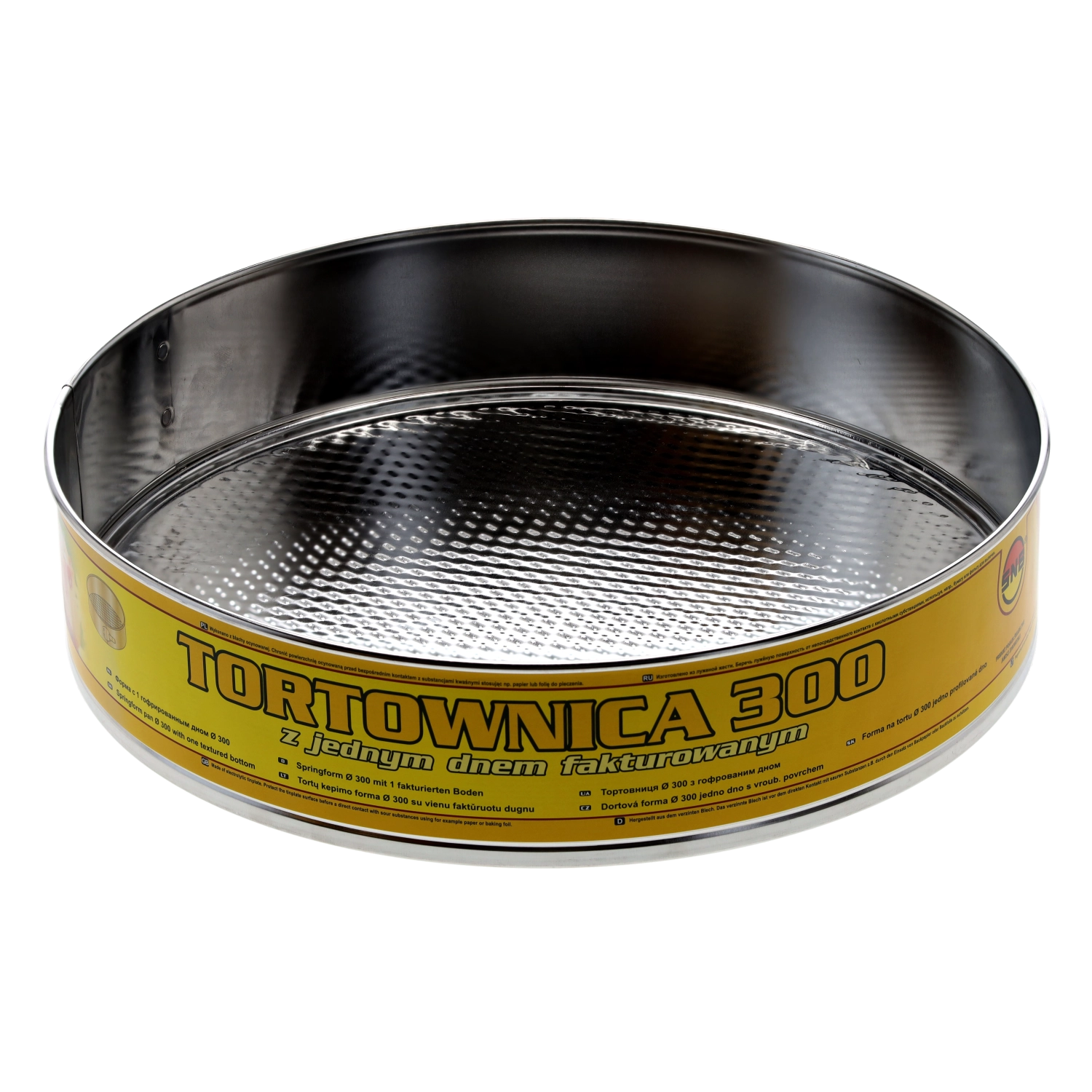 Praktikus és tartós, 30 cm átmérőjű SNB tortaforma, ideális torták, sajttorták és piskóták sütéséhez. A levehető oldalfalaknak és a különálló aljnak köszönhetően a desszert könnyen kivehető. A ónozott lemez hosszú élettartamot biztosít, a strukturált alj pedig csökkenti a tészta letapadását. A termék BPA-mentes és élelmiszerrel érintkezésre alkalmas.